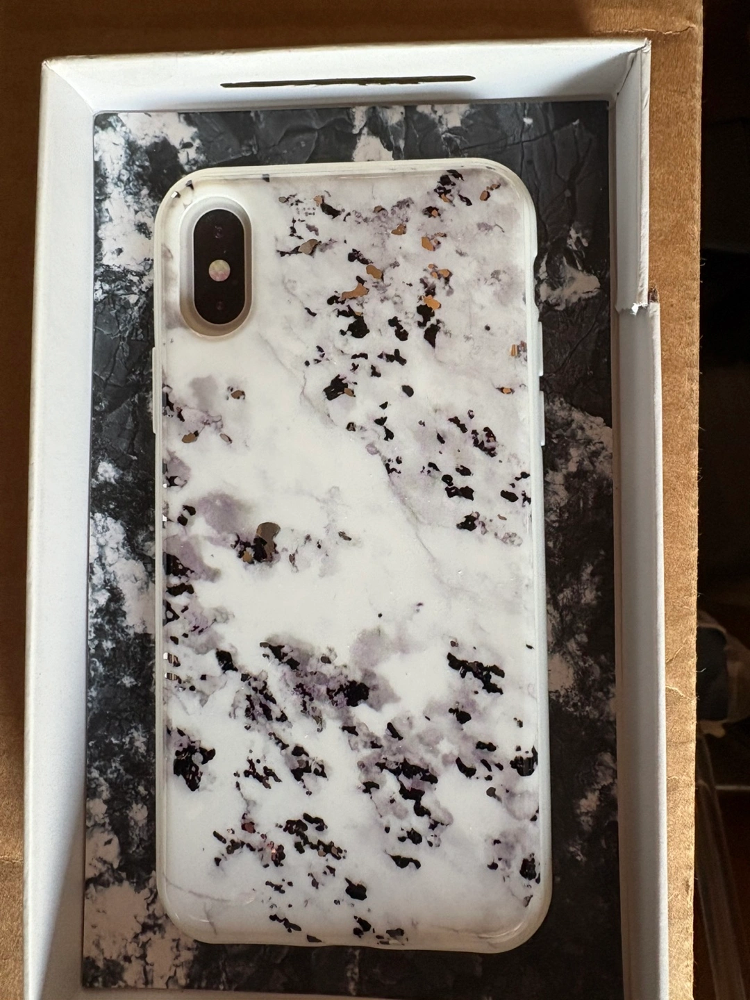 A stylish marble patterned phone case. Includes the original box. You can always put this in your pocket and be ready to go.