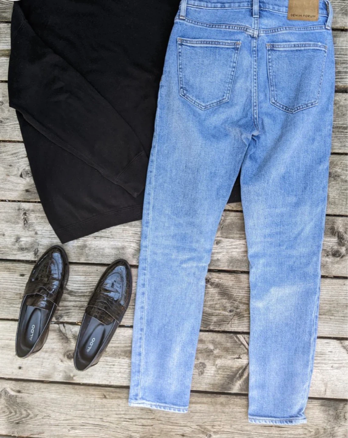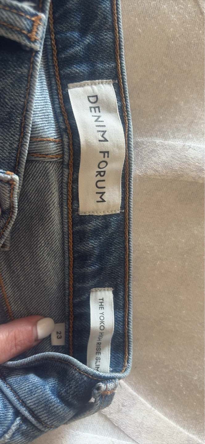 Classic light wash denim jeans from Denim Forum. Featuring a high rise and a slim leg silhouette. Cotton denim construction.