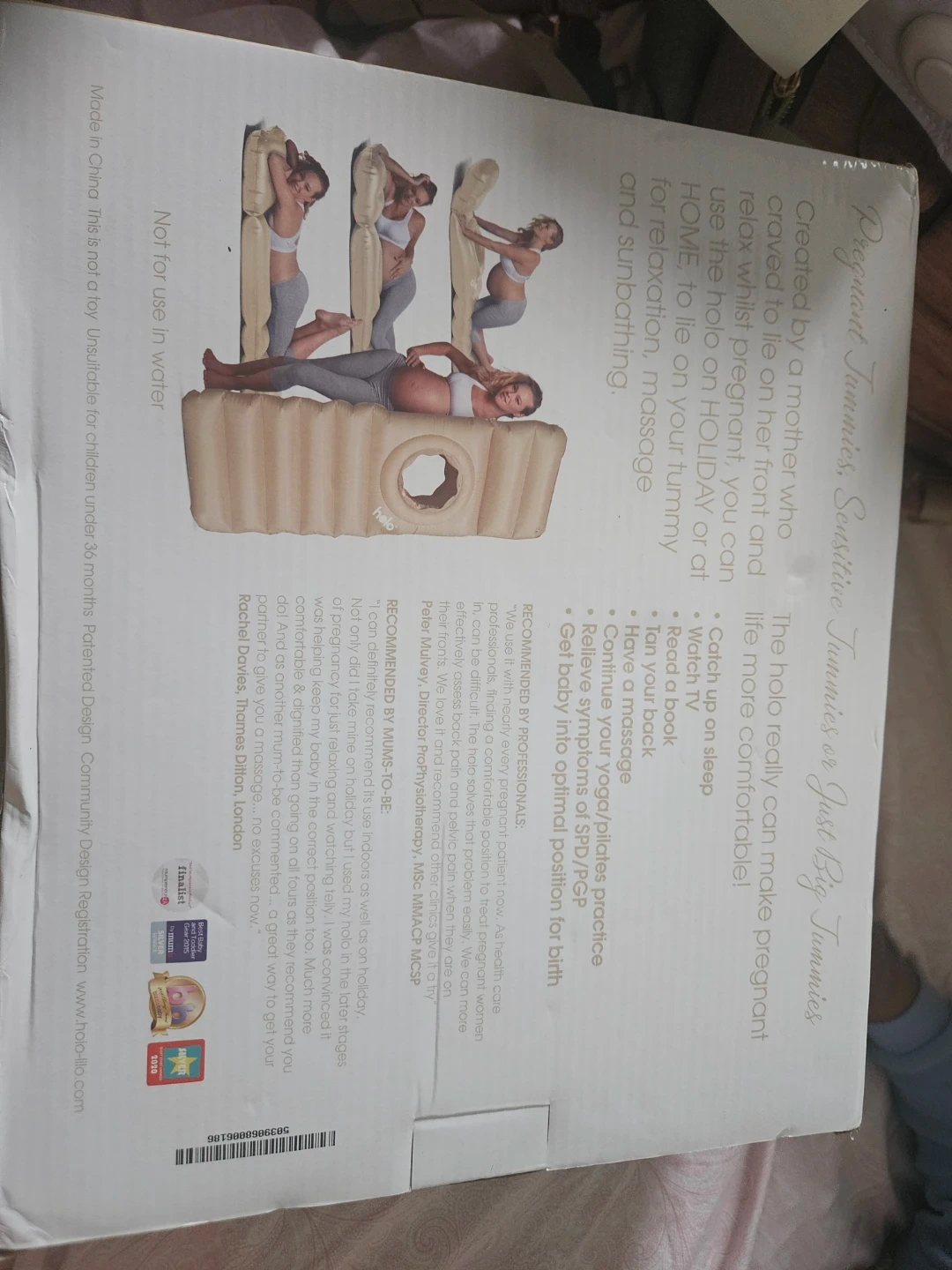 This is the Holo original inflatable pregnancy pillow, designed for stomach sleeping. It's phthalate-free PVC and perfect for relaxation and comfort during pregnancy. It can also be used for yoga and pilates practice.