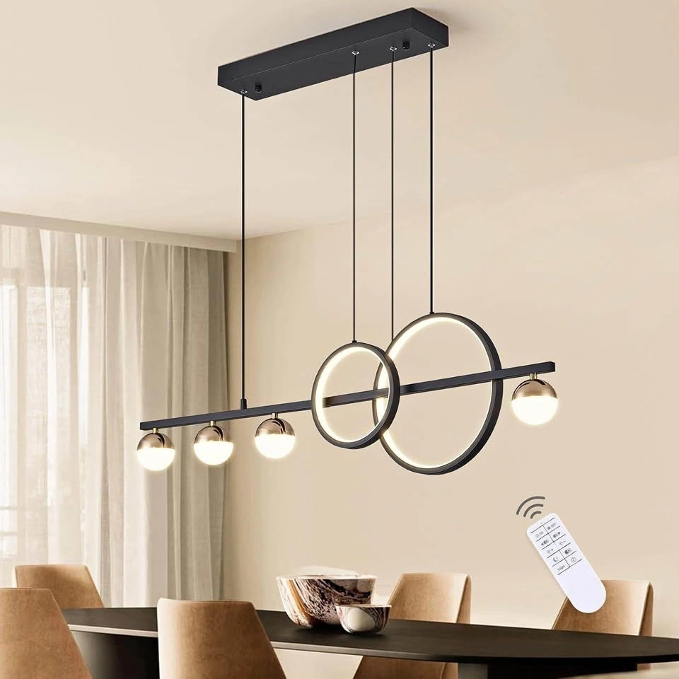Modern Black & Gold LED Chandelier - Dimmable, Remote