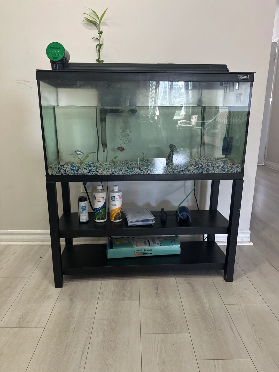 55-gallon aquarium complete with stand. Includes filter and some fish keeping supplies. Good condition. Only available for pickup.