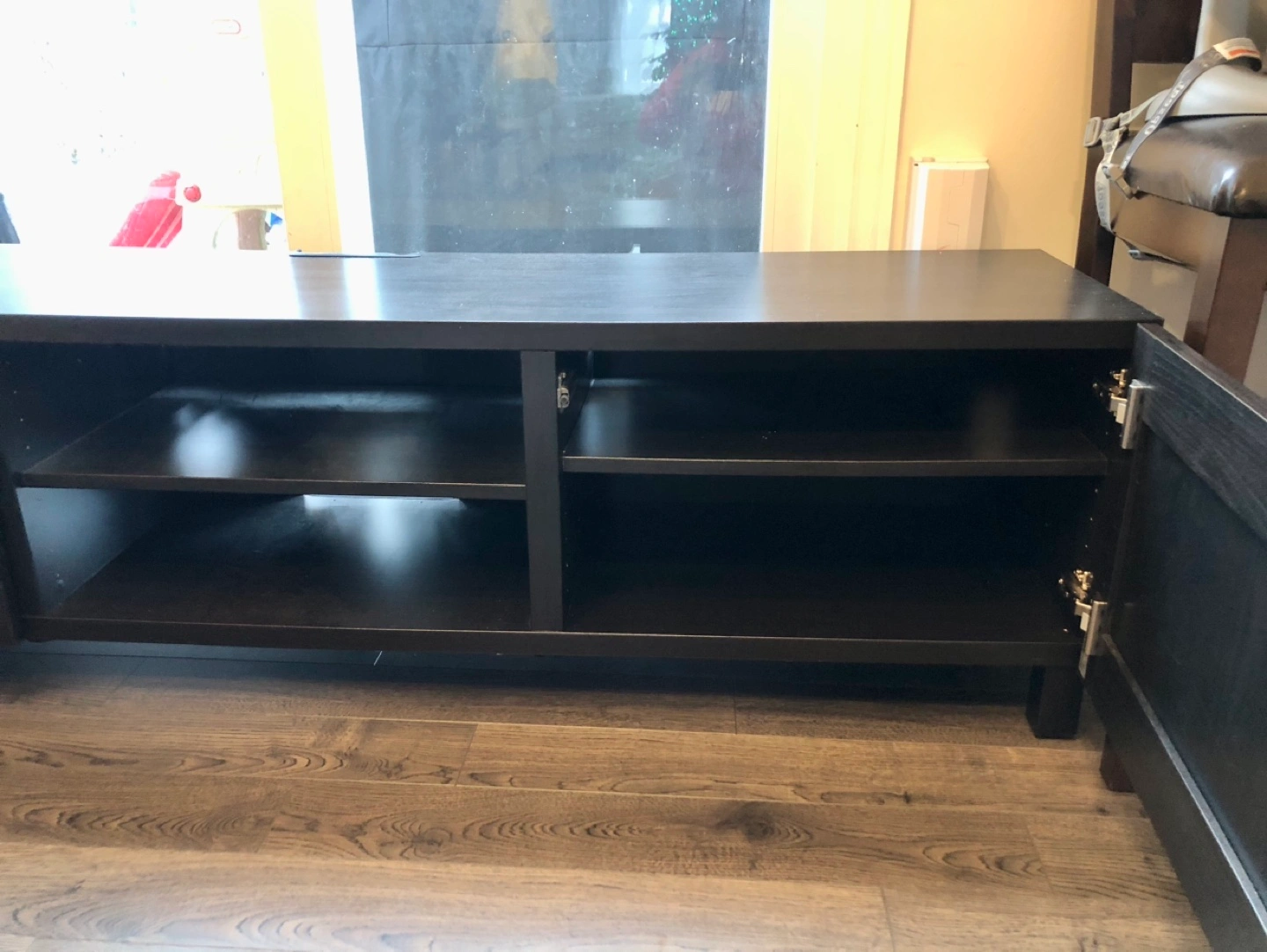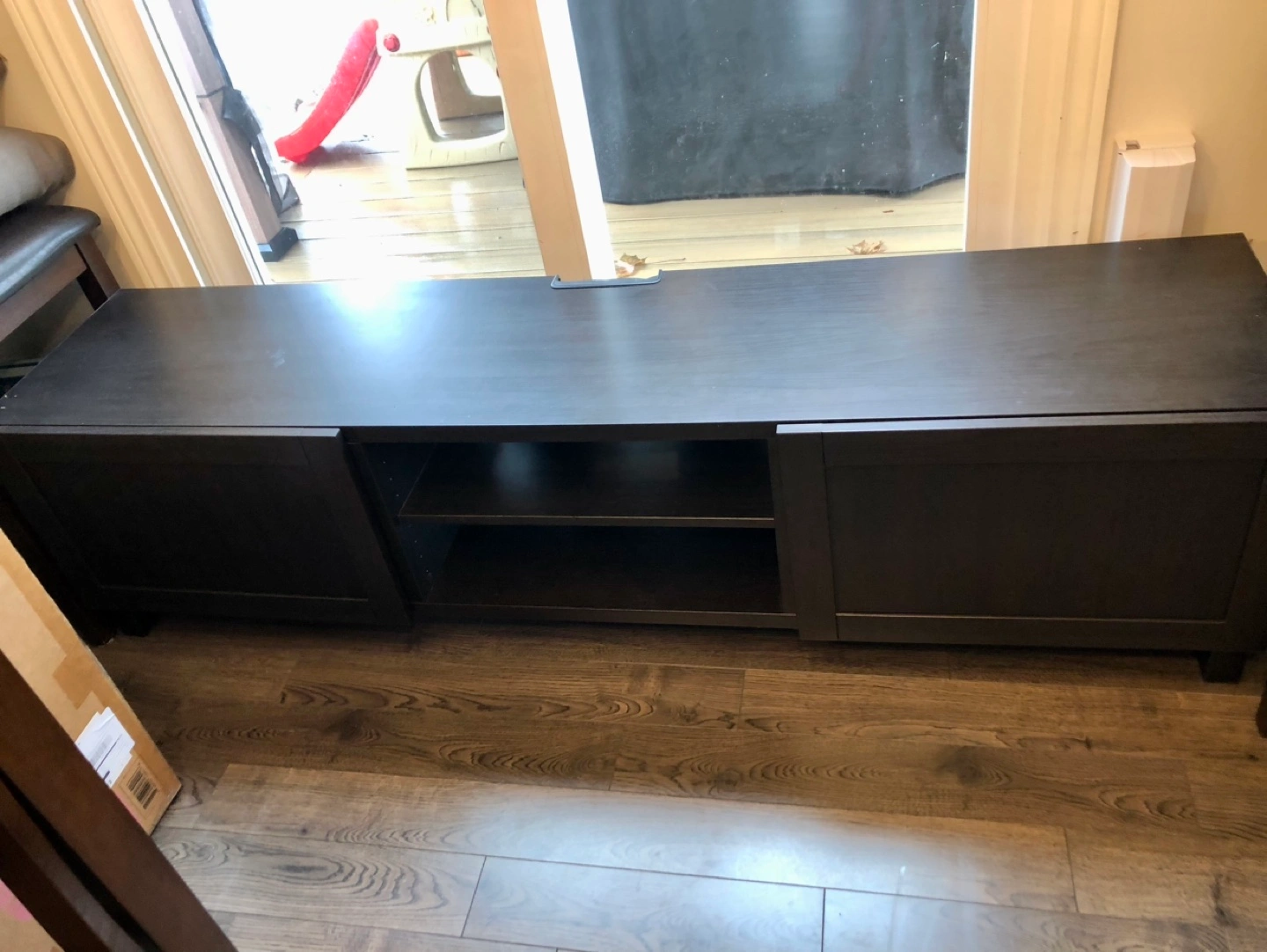 BESTA IKEA TV stand (black/brown) with additional shelving and 2 doors.
