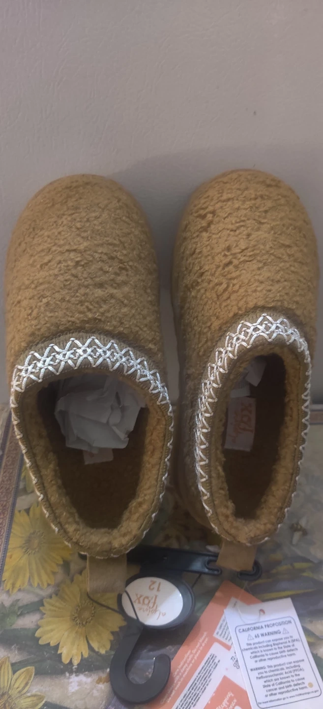 These Alpine Fox slippers are brand new and ready to keep your feet cozy! They're a size 12 kids and have a lovely, neutral colour that will go with anything.