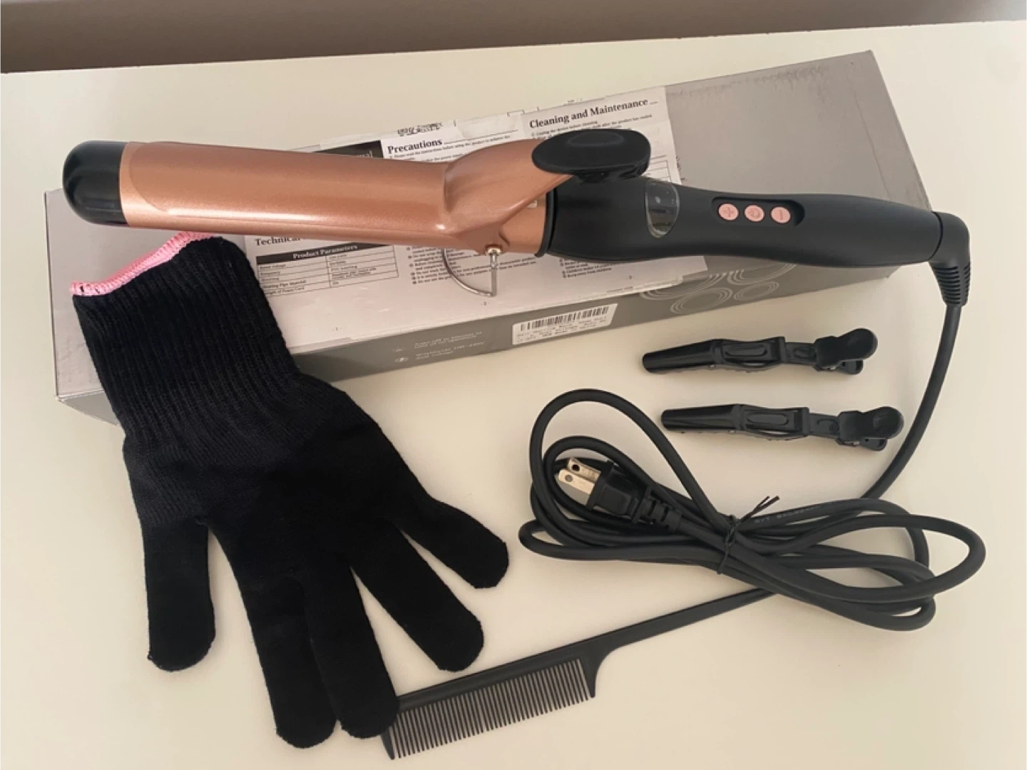 60New in box! Curling Iron 1 1/4 Inch Large Barrel with Clamp, 1.25 Inch Hair Curler Wand for Medium and Long Hair, Ceramic Coating 1.25” ceramic curling iron perfect for easy, beautiful curls at home. Dual-voltage for travel. Unused gift, so letting it go!