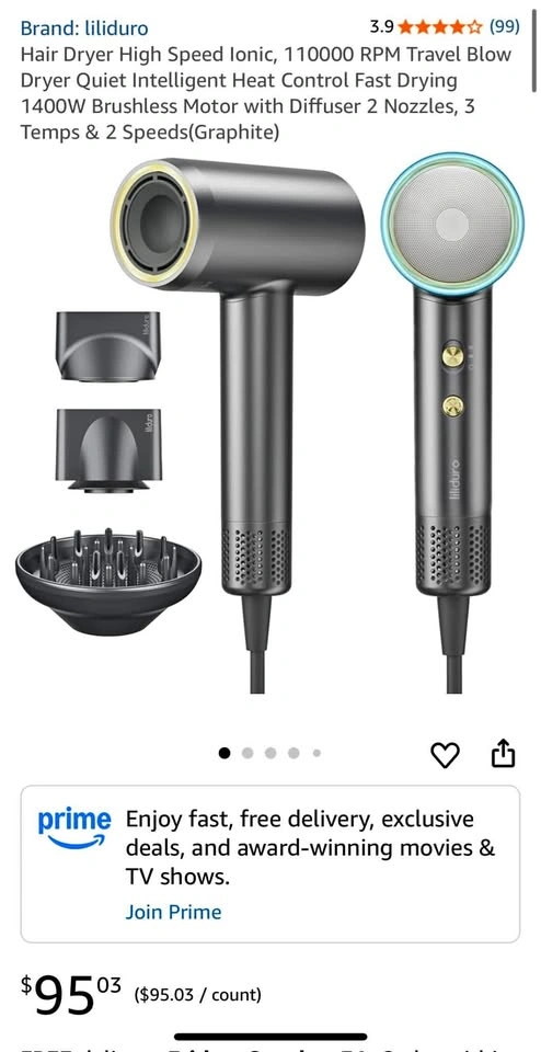 Show allHair Dryer High Speed Ionic, 110000 RPM Travel Blow Dryer