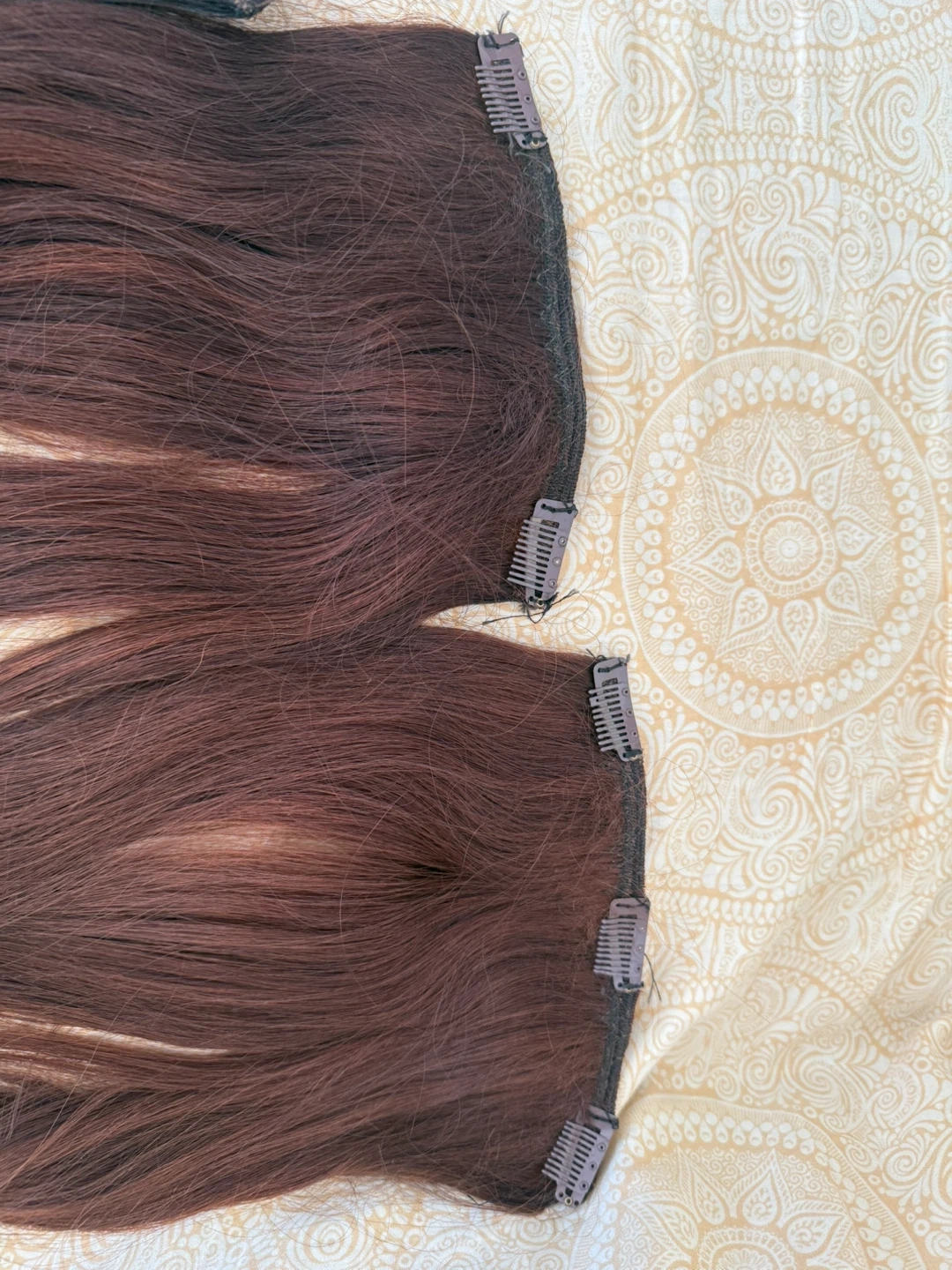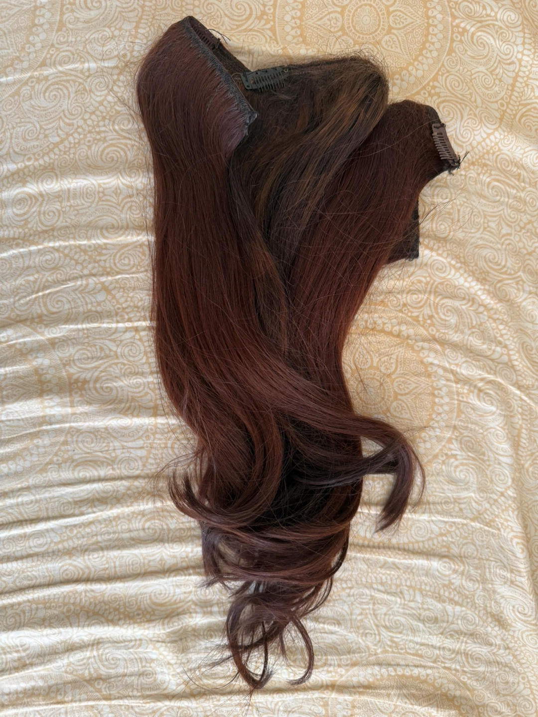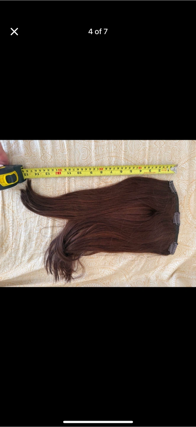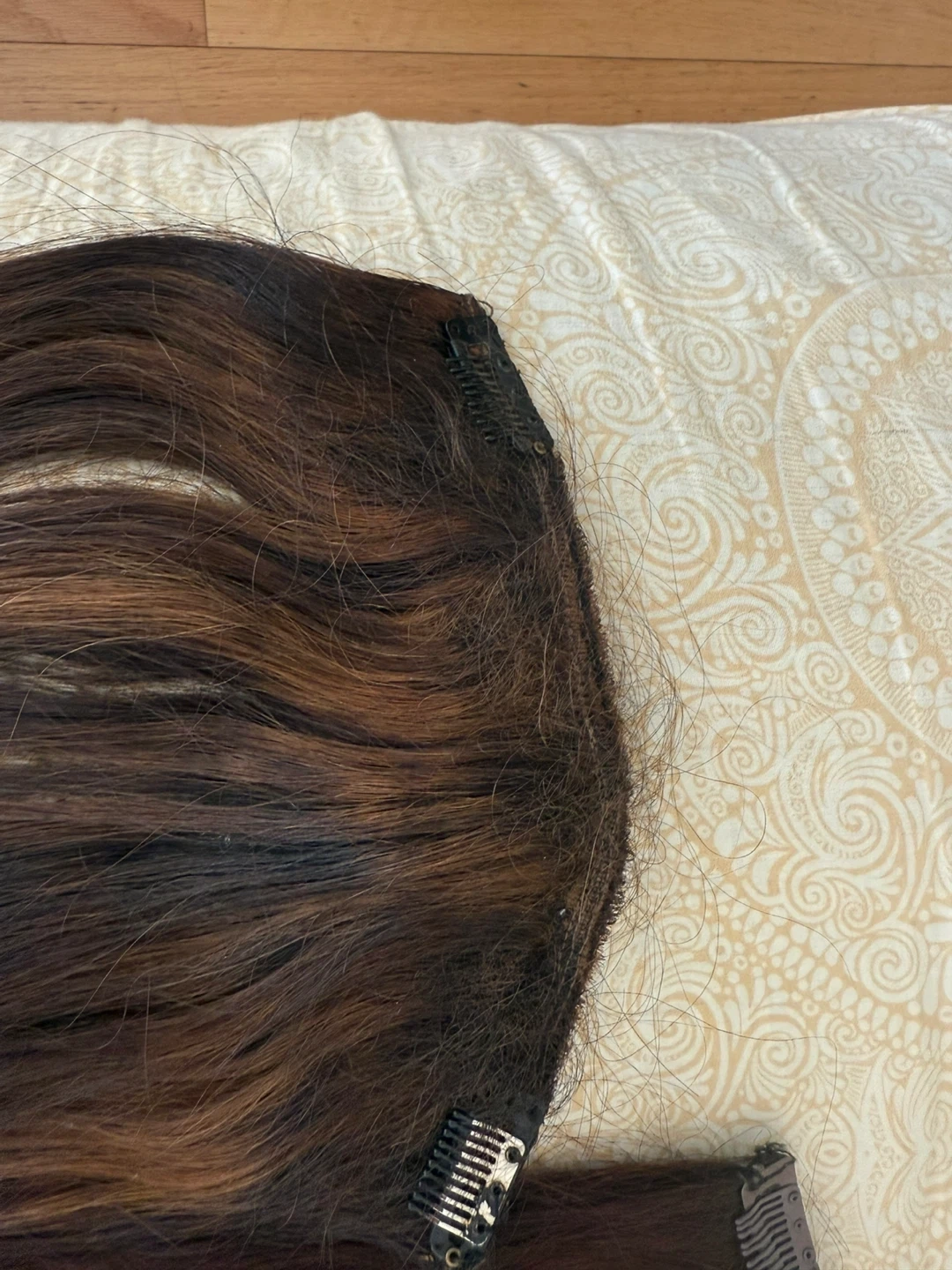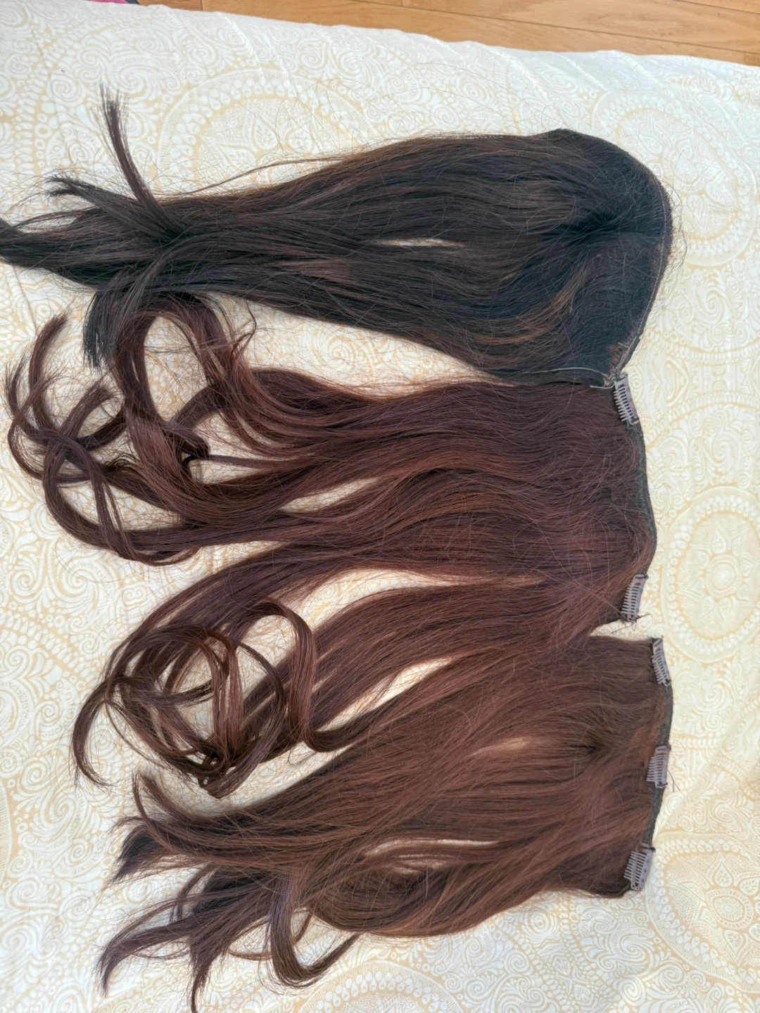 Premium Natural Hair Extensions 3 pieces of 100% real human hair Style it your way: dye, curl, or straighten Super thick & voluminous for a full look Gently used only twice – like new! Ready to wear with clips already attached Perfect for instant glam and a natural finish