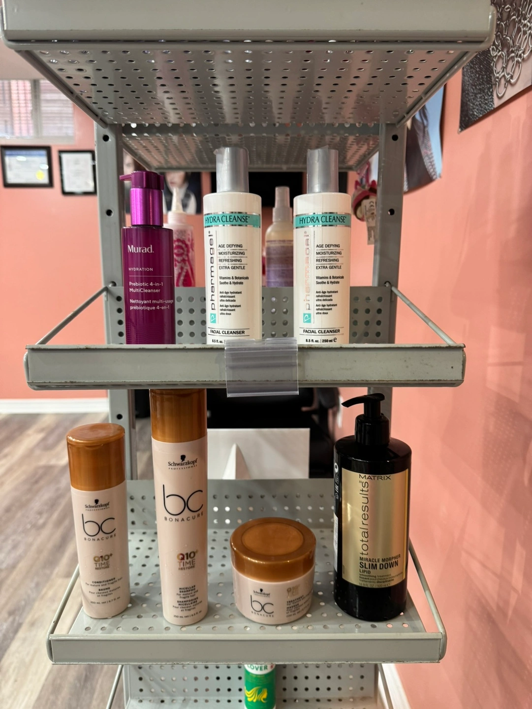 43A large collection of hair products, including shampoos, conditioners, treatments, and styling products. Also face products $5 each Price is firm