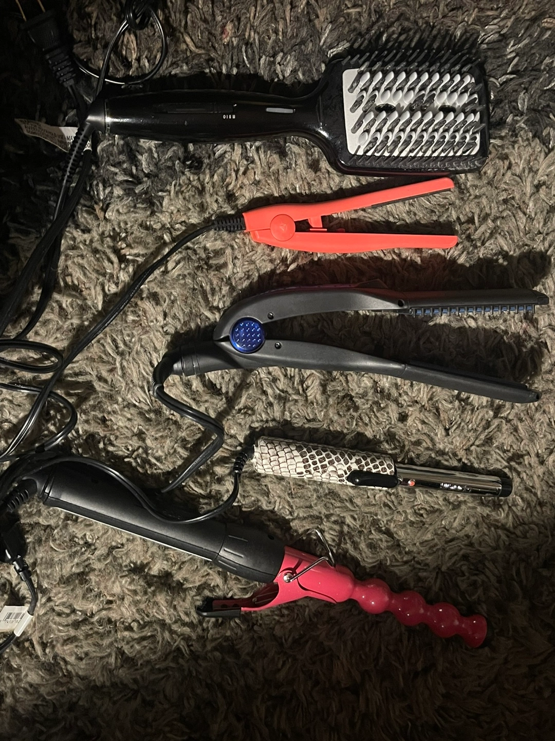 18Selling a bundle of various hair styling tools! Includes a hair brush, mini flat iron, another flat iron, a curling iron, and a curling wand. Perfect for experimenting with different looks! Curling wand is 20.00 Others as a bundle are 10.00 Everything together is 25.00 Porch pick up in Orillia