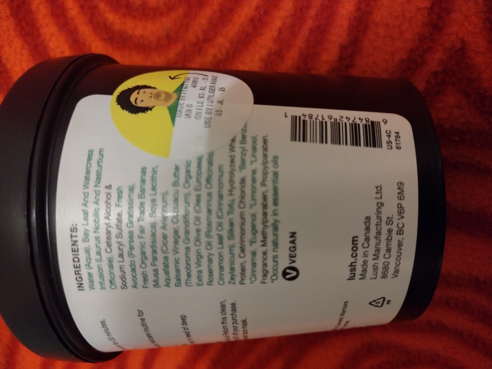 This is a Lush Hair Treatment For your scalp and hair to strengthen and heal your head of hair Ingredients is on the container on the 3rd slide