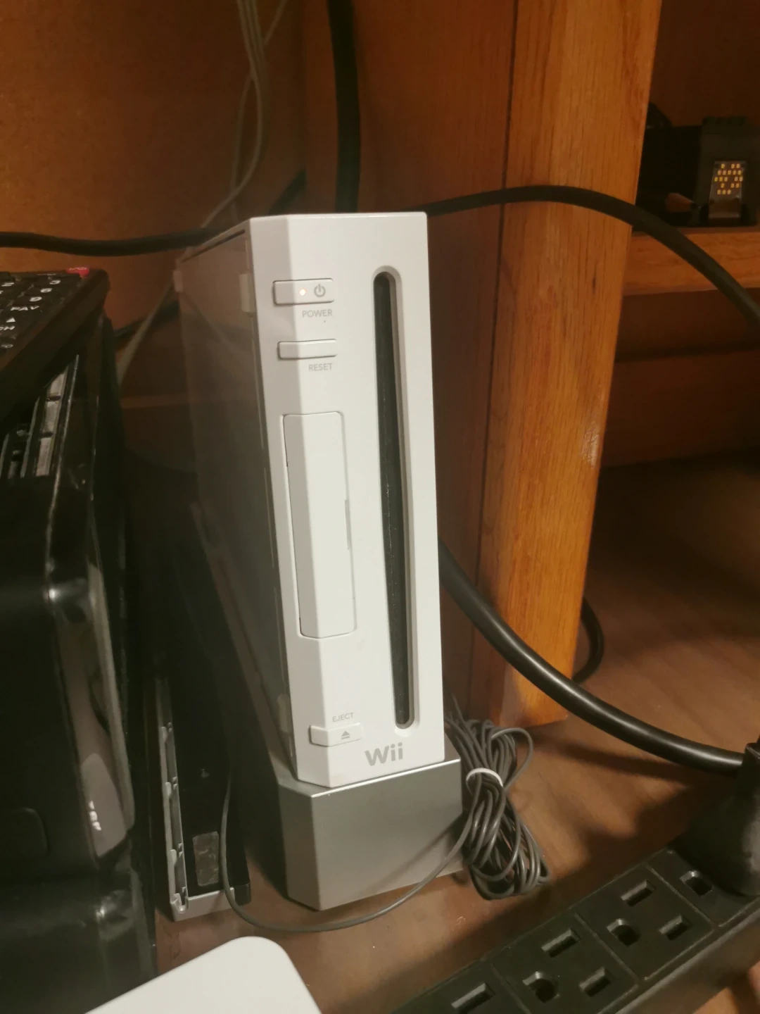 White Nintendo Wii gaming console. Includes power cable and one set of controller, Perfect for retro gaming nights.