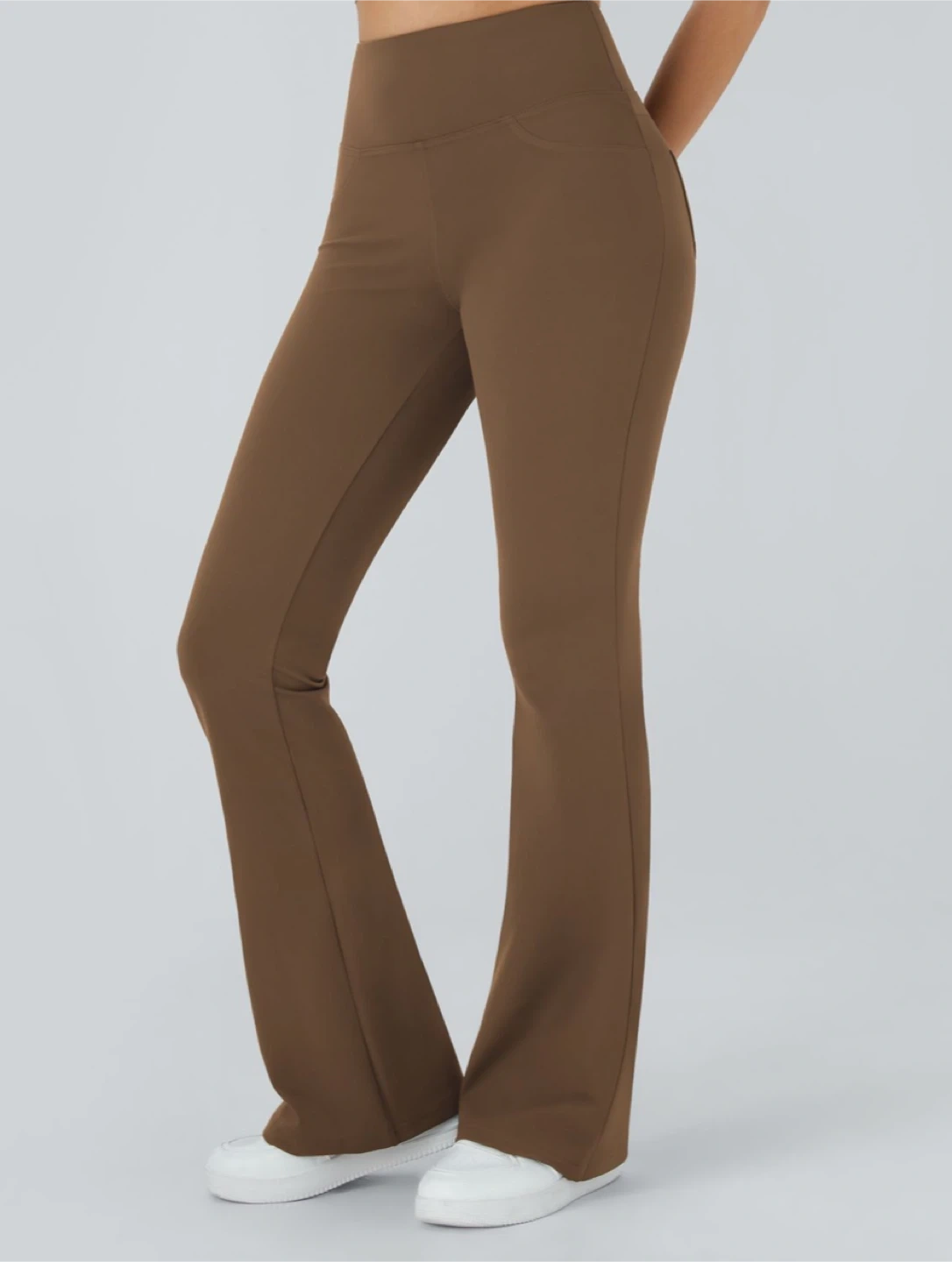 Halara High Waisted Back Pocket Flare Yoga Leggings - Sepia