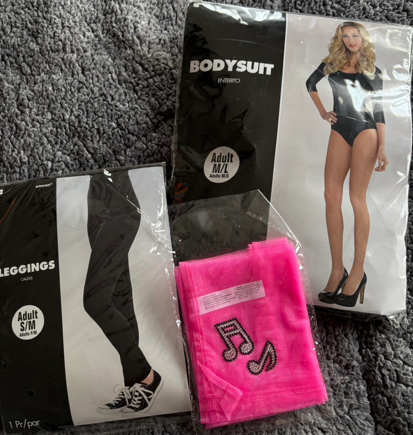 Three separate costumes. Inmate costume, plus size XXL. Nerd accessories: suspenders, tie, glasses. 80s aerobics outfit: bodysuit, leggings, pink scarf. Great for Halloween or themed parties. NEVER USED Inmate Men’s XXL Party City $9 NEVER USED Body suit with leggings and scarf Ladies Medium Party City $9 NEVER USED Nerd suspenders, glasses and Tie Party City $5 OR $20FOR EVERYTHING
