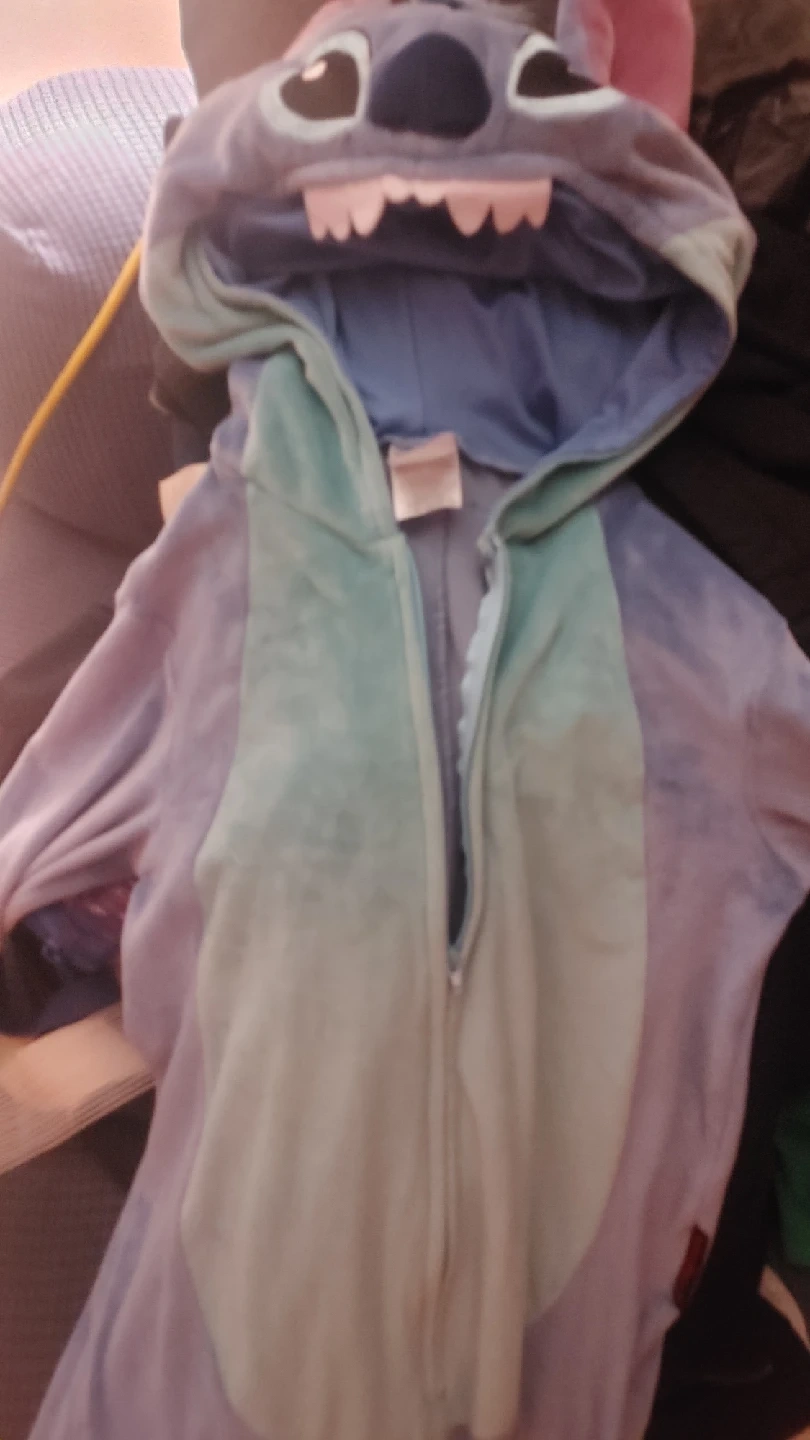 10Selling a cozy med size 'Stitch' either costume or ornesie! It's in good condition and perfect for lounging around the house or for a fun costume party. The onesie features a hood with Stitch's face and ears. There is a zipper down the front