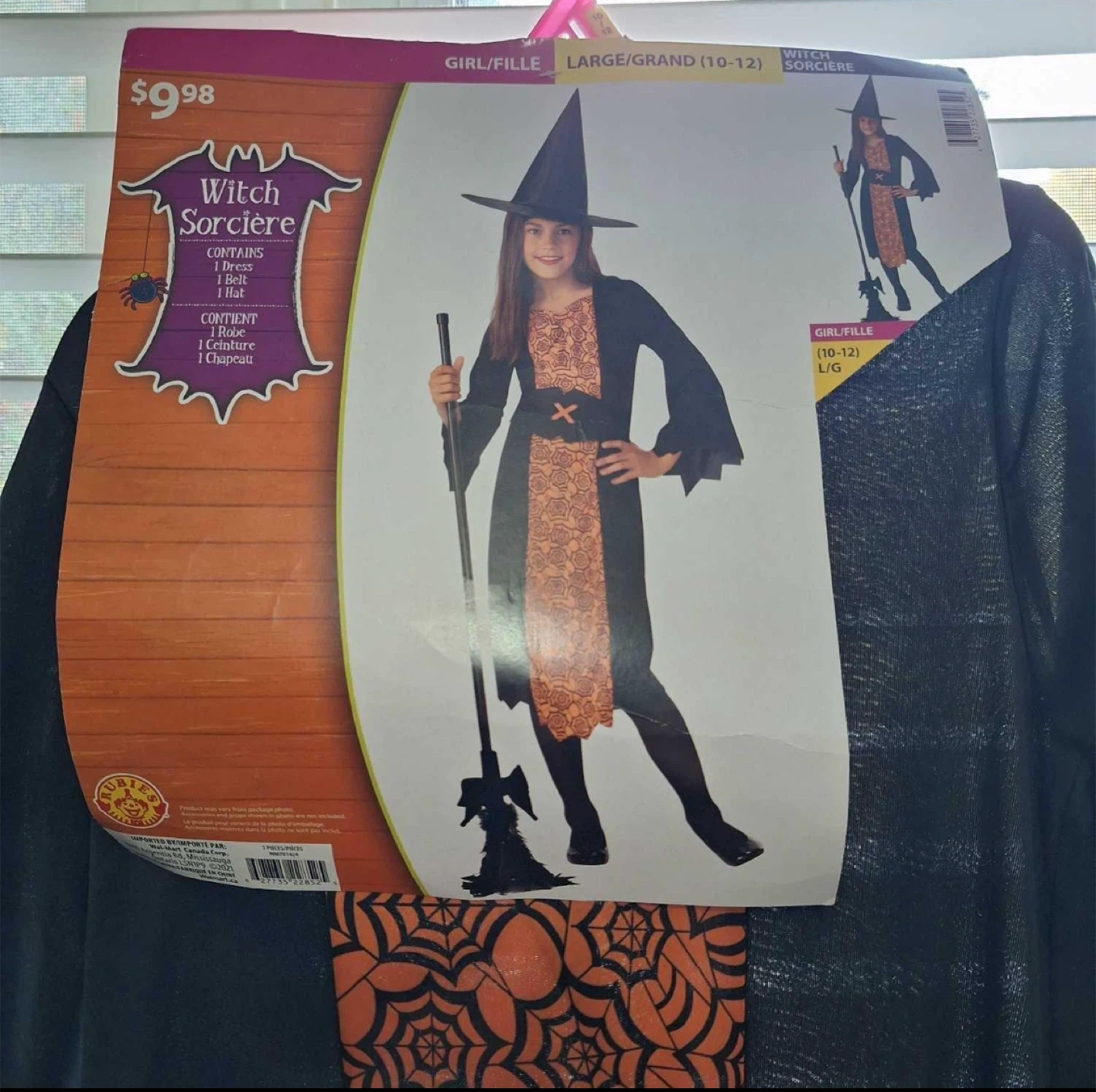 HALLOWEEN COSTUME WITCH SORCIERE GIRL SIZE LARGE 10-12 Excellent condition Includes dress, belt and hat Cash preferred or etransfer accepted from verified users Shipping options available Porch pick locations: Markham - Markham Rd & 16th Ave Oshawa - Wilson Rd & Adelaide Ave Pls feel free to ask me any questions