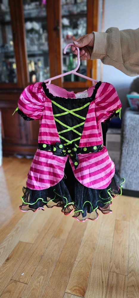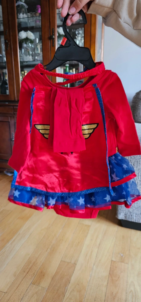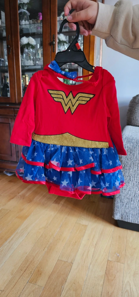 15Skeleton Dress Womens size small. Comes with dress. Worn once. Asking $15. Heart Emoticon Heart Emoji one piece (unisex) 12-18 months, love at first sight, Absolutely adorable, brand new, never been worn. Asking $10. Descendants Costume Mal from Descendants 3. Kids size large (10-12). Worn once. Just missing the wig. Asking $15. Devil Girls devil dress. Girls toddler size 3-4t. Worn once. Missing Headband. Asking $5. Witch Girls witch dress. Girls toddler size 2t. Worn once. Missing hat. Asking $5. Sorceress Witch sorceress dress. Girls size 8-10. Never worn. Asking $10. Wonder Woman Wonder woman (infant girls) 0-6 months. Comes with dress, headband and tights, super duper cute, worn once. Asking $15.