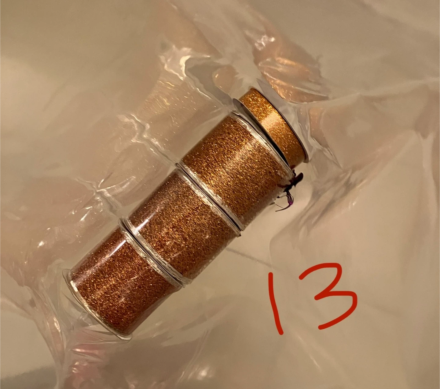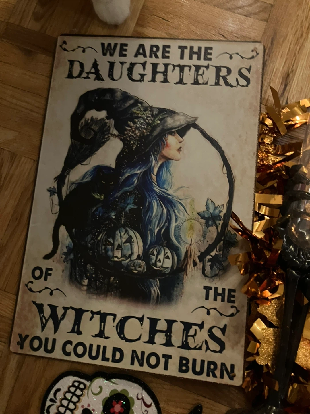 10Selling a Halloween decoration bundle. Includes a variety of items to add a spooky touch to your home this Halloween season! You'll find everything you need to create a festive and fun atmosphere. Includes: 1. Hanging decor- orange pumpkin tinsel, back/purple bats tinsel, skull decor 2. Orange “EEEK!” Ceramic pumpkin 3. Black ceramic pumpkin (SOLD) 4. Skeleton arm (SOLD) 5. Black glass potion bottle with skull detail and real feathers (SOLD) 6. Skull hand glass 7. Metal witches sign 8. Misc haloween themed stamps 9. Black book with green monster eye decor 10. Cast a spell tote bag 11. Spider themed black scrunchie 12. Black iron teapot with base. (SOLD) 13. Orange ribbon (4 rolls) (skinny ribbon SOLD)