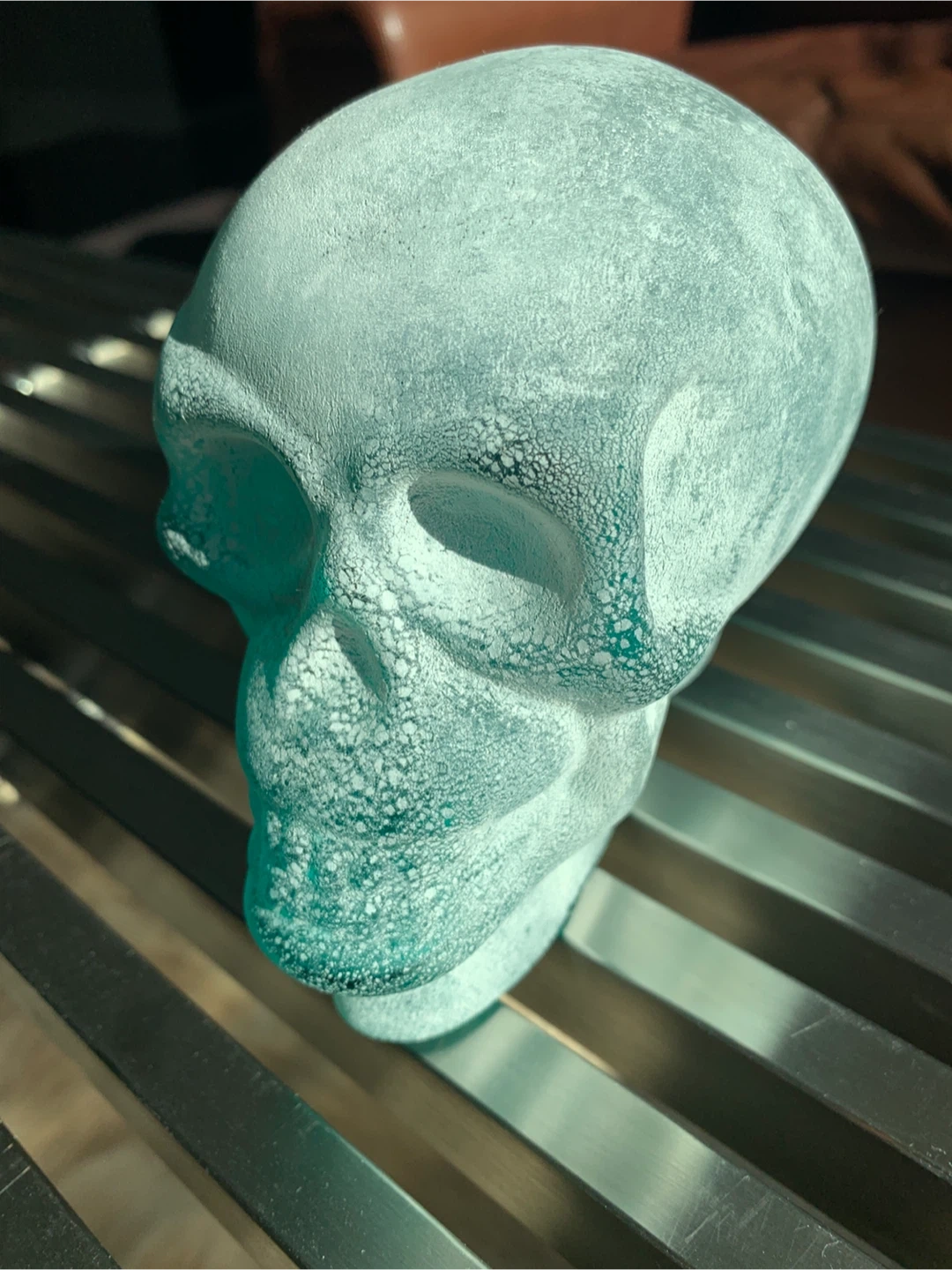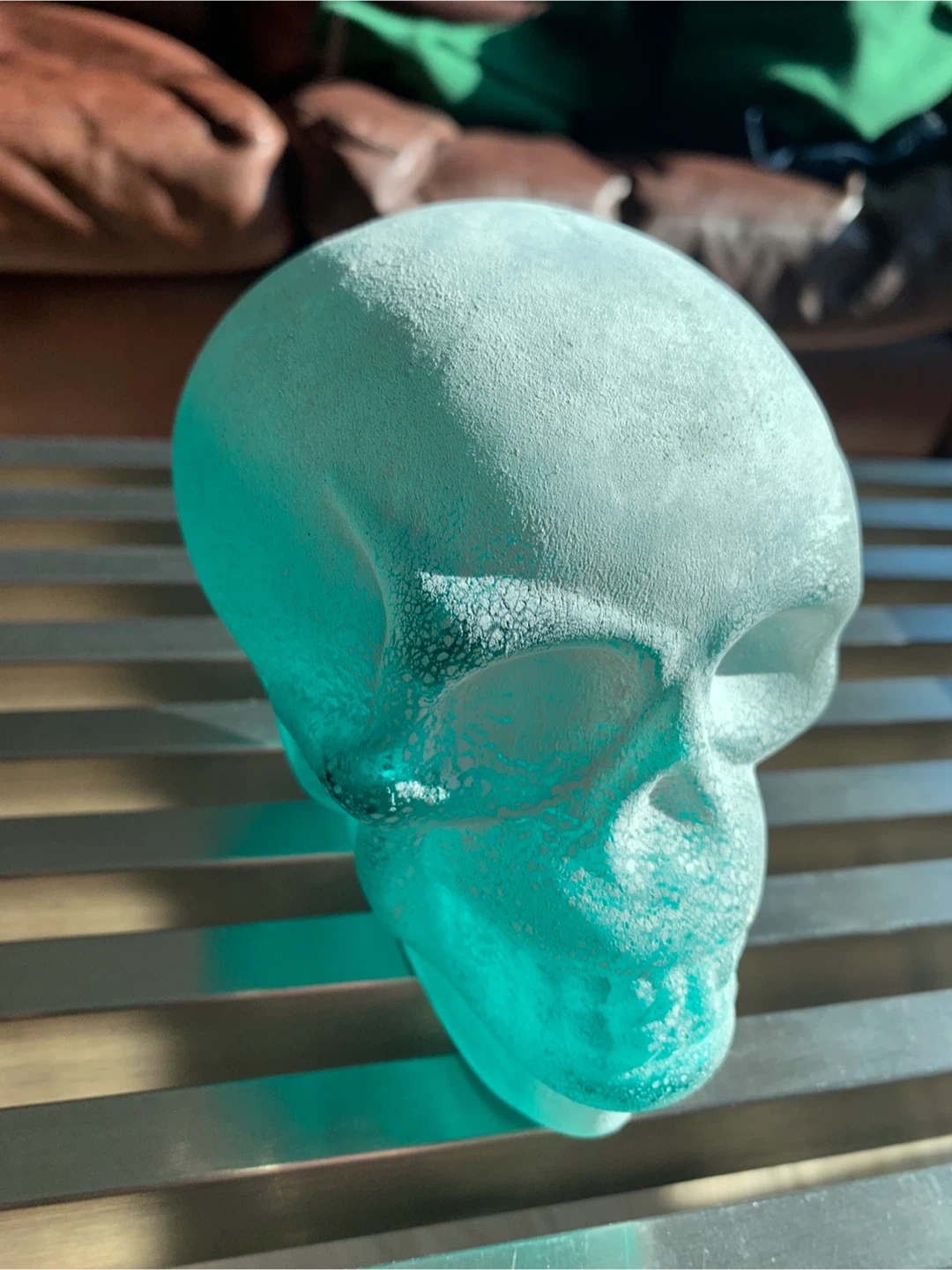 47Glass skull sculpture. 4.5” high. Pick up and cash only.