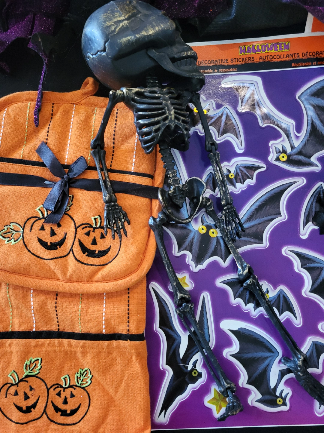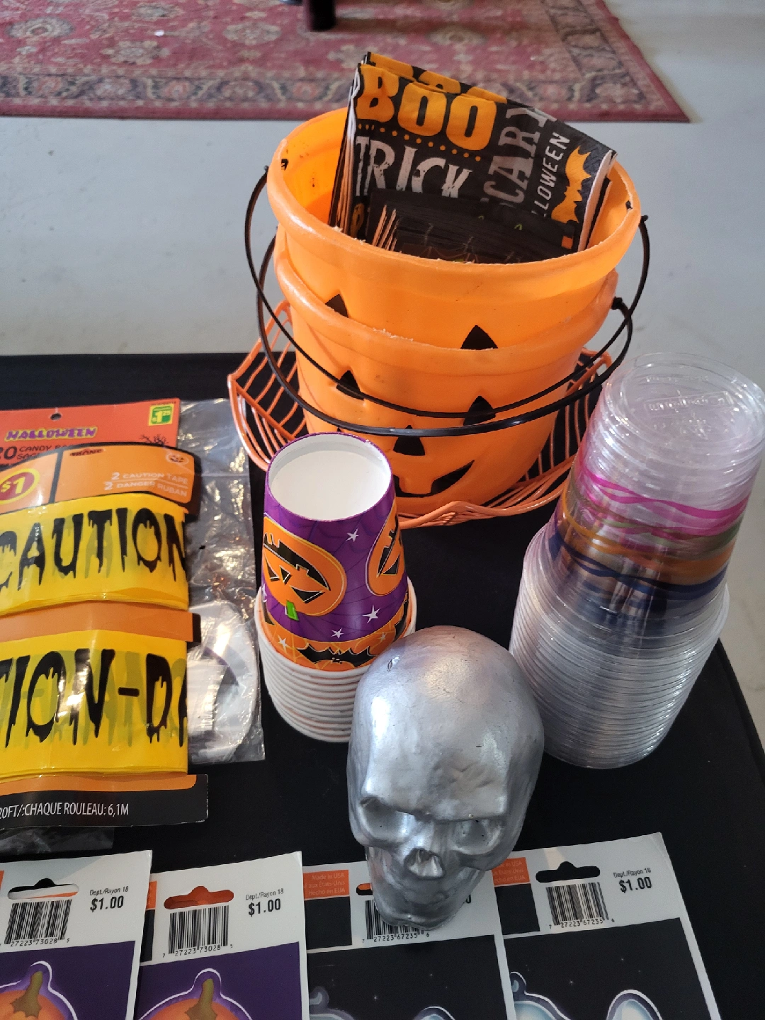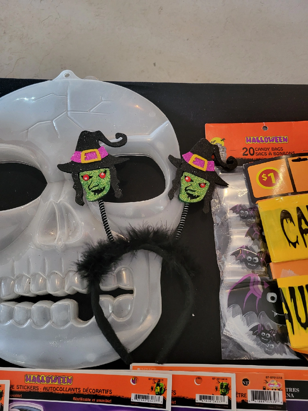 Halloween decorations! Approximately 50 Pieces All brand new or practically new! Includes a skull wreaths, bat decorations, pumpkin-themed items, a skeleton, and more. Perfect for getting your home spooky for Halloween! (Dollar Store value = approx $75-$100) @ $1.25 - $3.00/piece retail + taxes Quick pick up dntwn St.Catharines at St. Paul St. and James St.