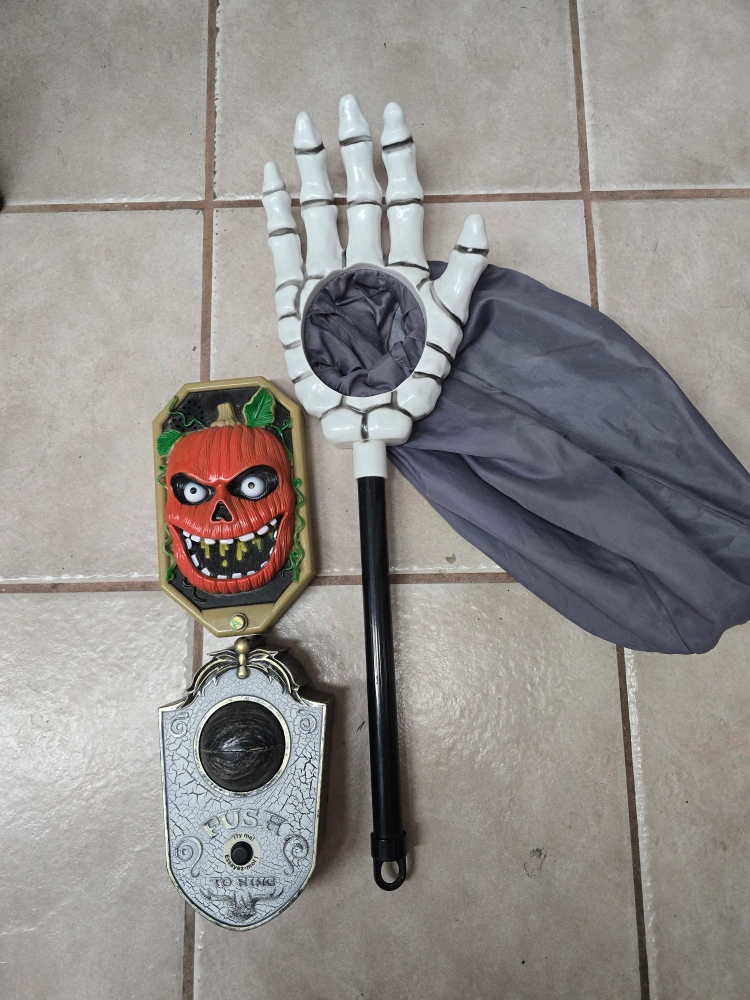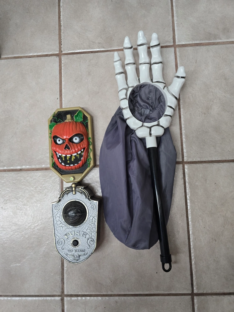 Selling some fun Halloween decorations! One is a pumpkin face and the other is a skeleton hand