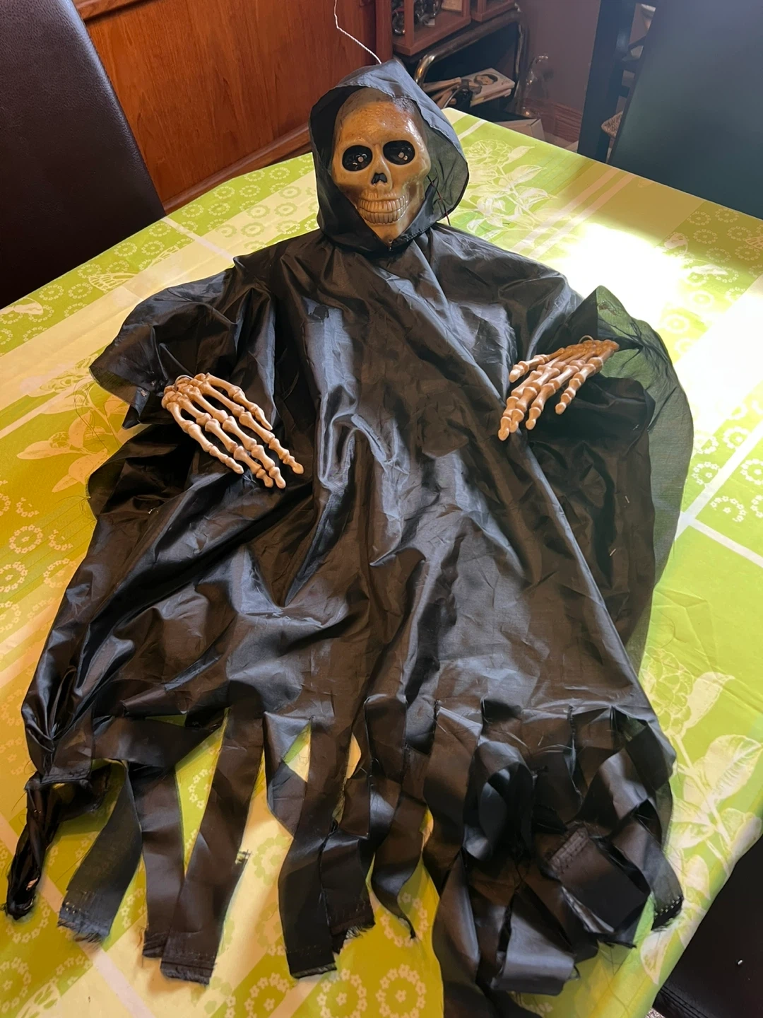 35Get ready for Halloween with this spooky Grim Reaper decoration! It's in great condition and ready to add some fright to your home this October