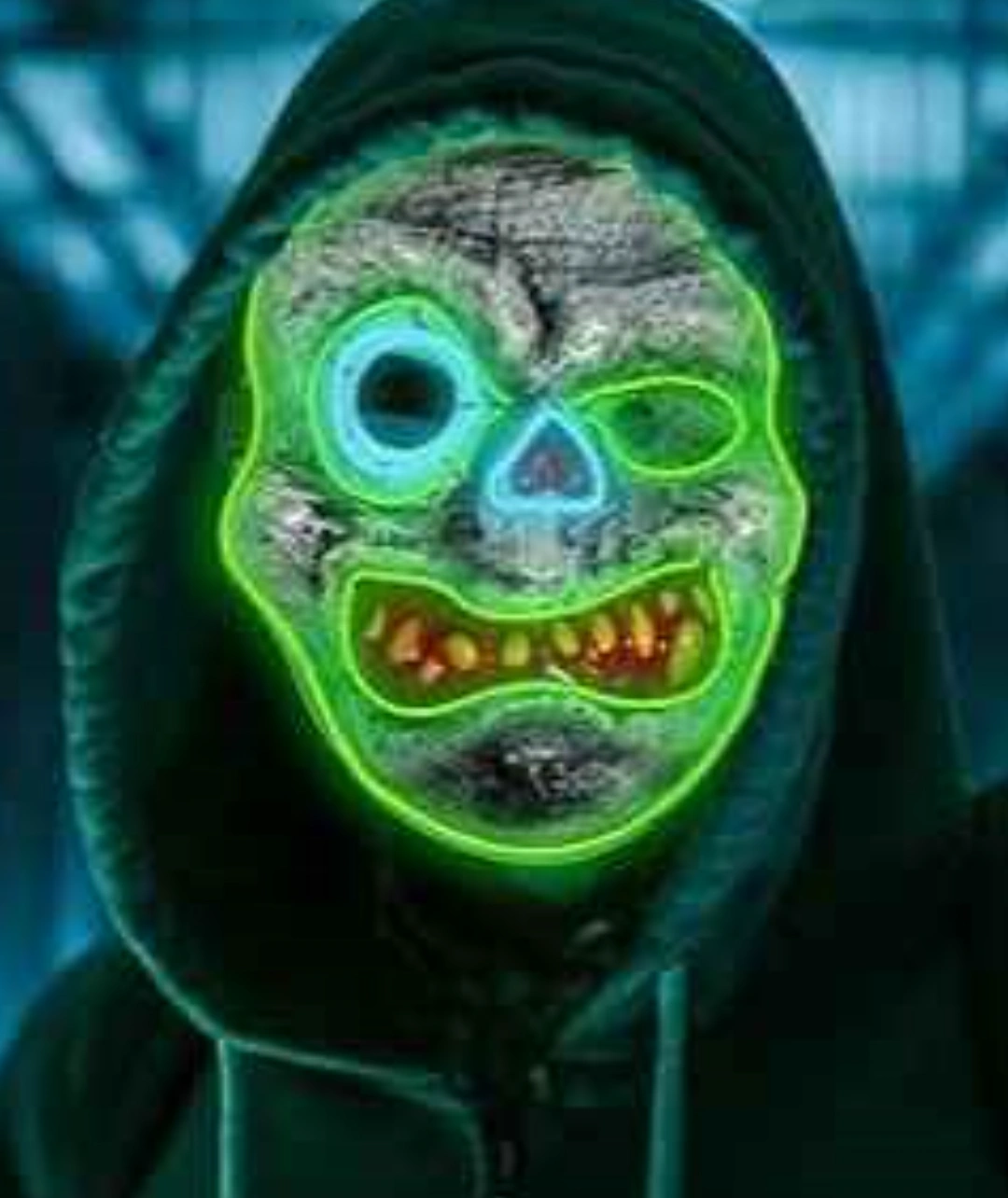 Safe and Non-ToxicMade from high-quality PVC and EL cold light wire, this Halloween mask ensures no UV harm and is environmentally friendly, offering a safe experience for all users. Multiple Lighting Modes The mask features three lighting modessteady light, slow flash, and fast flashallowing you to customize your look for any Halloween celebration. Portable DesignEasily attach the power pack to your pocket or clothing. Requires 2 AA batteries (not incl.), making it convenient for on-the-go use. Adjustable fit with padded straps and adjustable shoulder straps, this mask fits all face shapes (ages 5 and up), allowing for comfortable breathing without eye strain or fatigue. 🎃ITS A BETTER FIT FOR A SMALL TO REGULAR SIZE SHAPED FACE/ HEAD. 🎃REQUIRES 2AA BATTERIES THAT I AM INCLUDING. NO TRICKS HERE!🎃 🎃I AM LOCATED IN THE YONGE AND STEELES AREA FOR PICKUP.