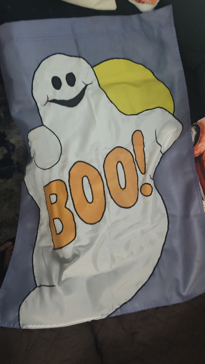Halloween Lot of 1) flag 41L x 28W. 2) BN Package of 20 treat bags, 3) 3 packages of BN fright tape 30'. 4) treat pail. 5) orange pom pom head band in ok condition. NS, small dog home. PU 216th & Lougheed Hwy or Thursday's Langley Centre 930-1230.