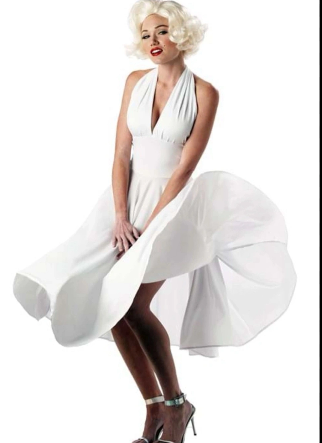 Selling a Marilyn Monroe costume, perfect for Halloween or a themed party! It comes with the dress, handcuffs and matching gloves. The dress is white and has a halter neckline. It's in like new condition and ready for a new owner! *blonde wig sold separately for $15