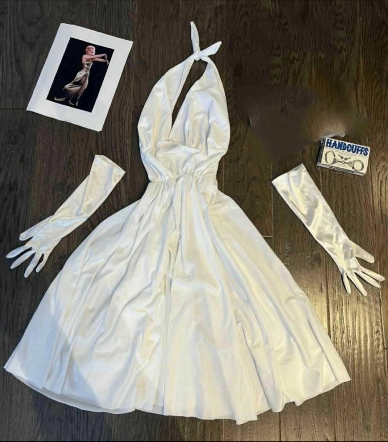 HALLOWEEN (Marilyn Monroe Costume Dress, Handcuffs and Gloves)