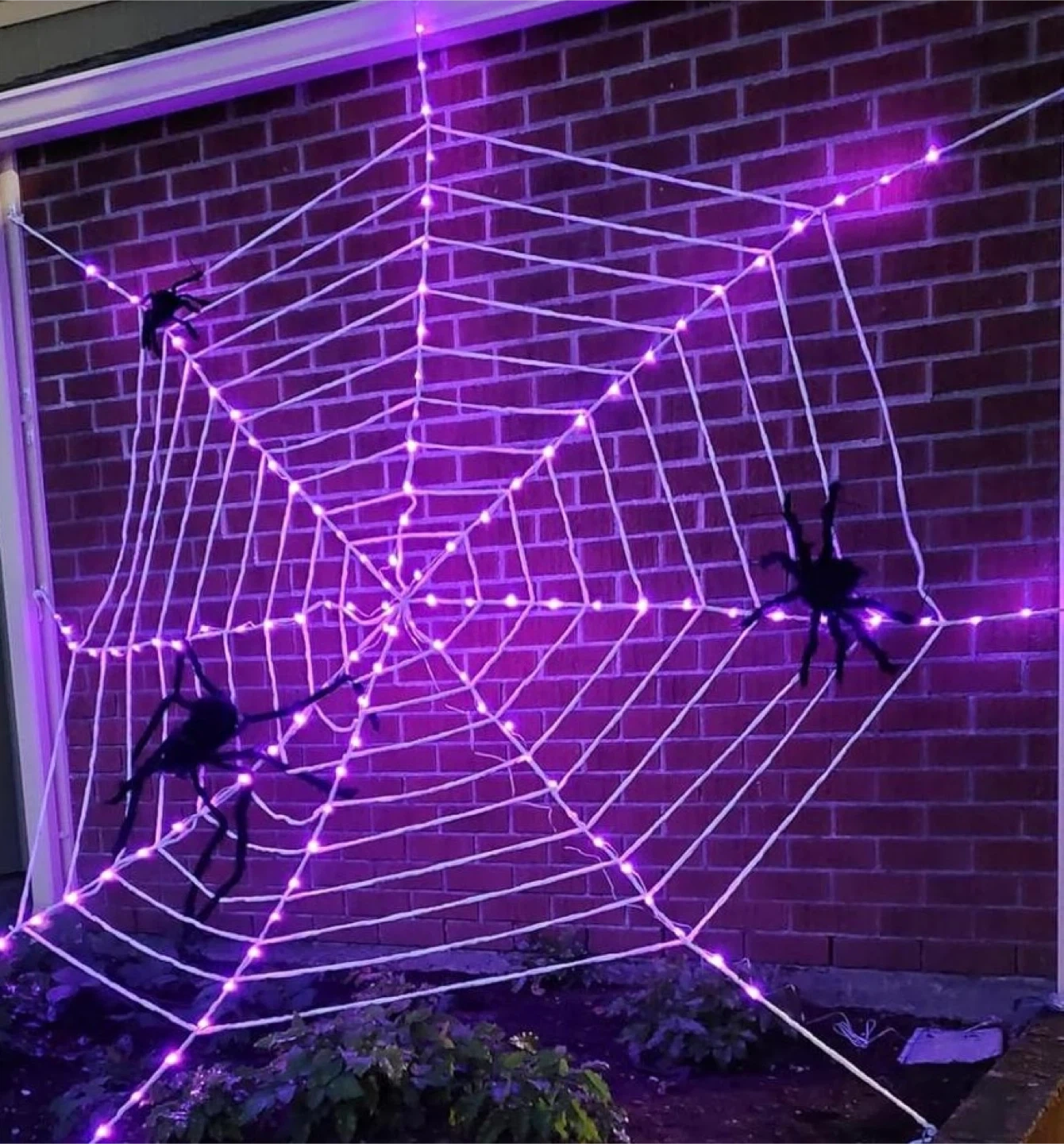 10Get ready for Halloween with this fun spider web decoration! It features purple lights to add a spooky touch to your home. Perfect for indoor or outdoor use, it's sure to be a hit with trick-or-treaters