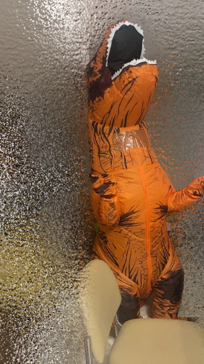 Roar into fun with this inflatable T-Rex dinosaur costume! It's perfect for parties, Halloween, or just horsing around. The costume is in great shape and comes with its original box. Get ready to stomp and chomp!new and never used
