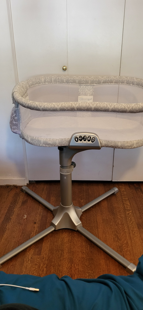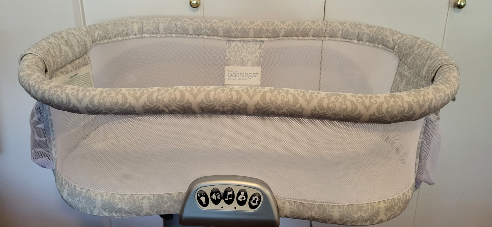 20Good condition except that the vibration feature doesn't seem to work. Or possibly, I don't understand how it works. 🤷 The light and music work great. I have a fitted sheet for it. It is very stable because the base is very heavy. You can swivel it over or next to the bed and the side folds down for easy night time feeding.