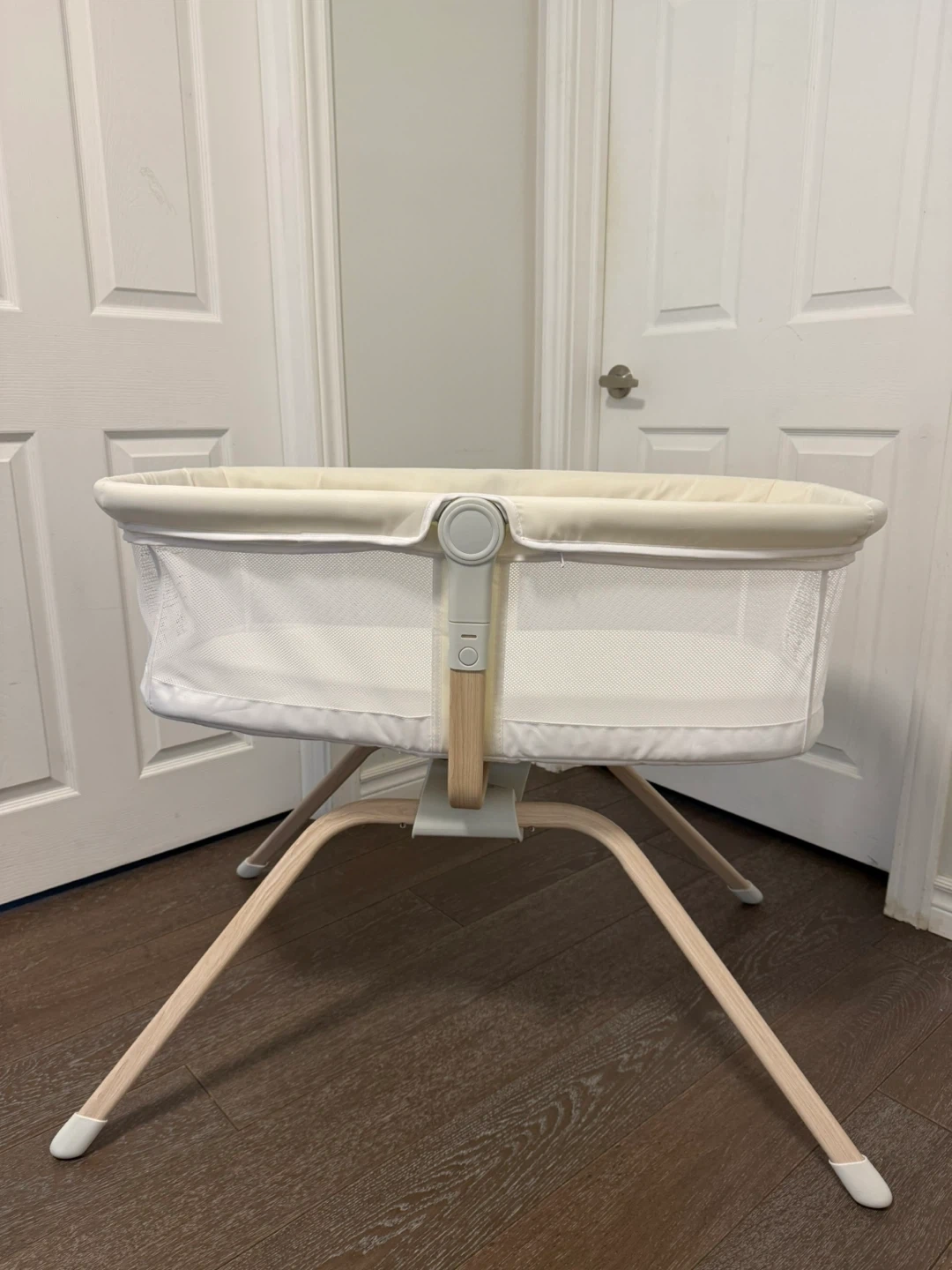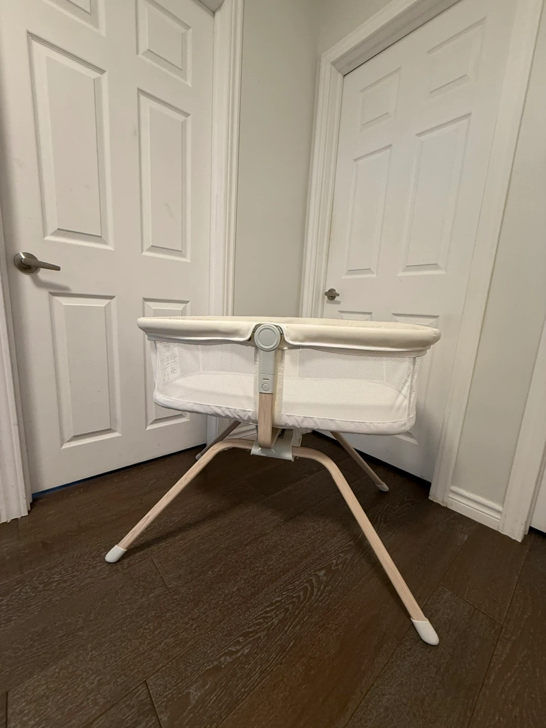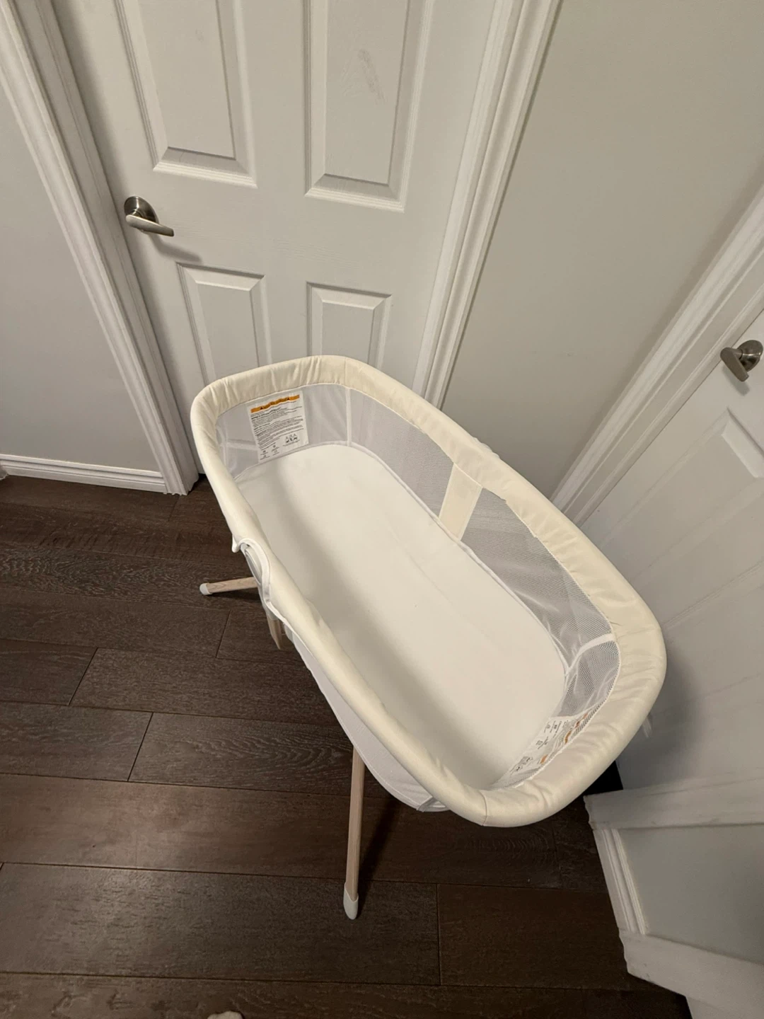 10Selling a Halo Bassinest Swivel Sleeper in great condition! This bassinet is perfect for keeping your little one close during the early months. It features a swivel function, allowing you to easily bring your baby closer for feeding and comfort. The mesh sides provide breathability and visibility. It's a great option for new parents looking for a safe and convenient sleeping solution for their baby