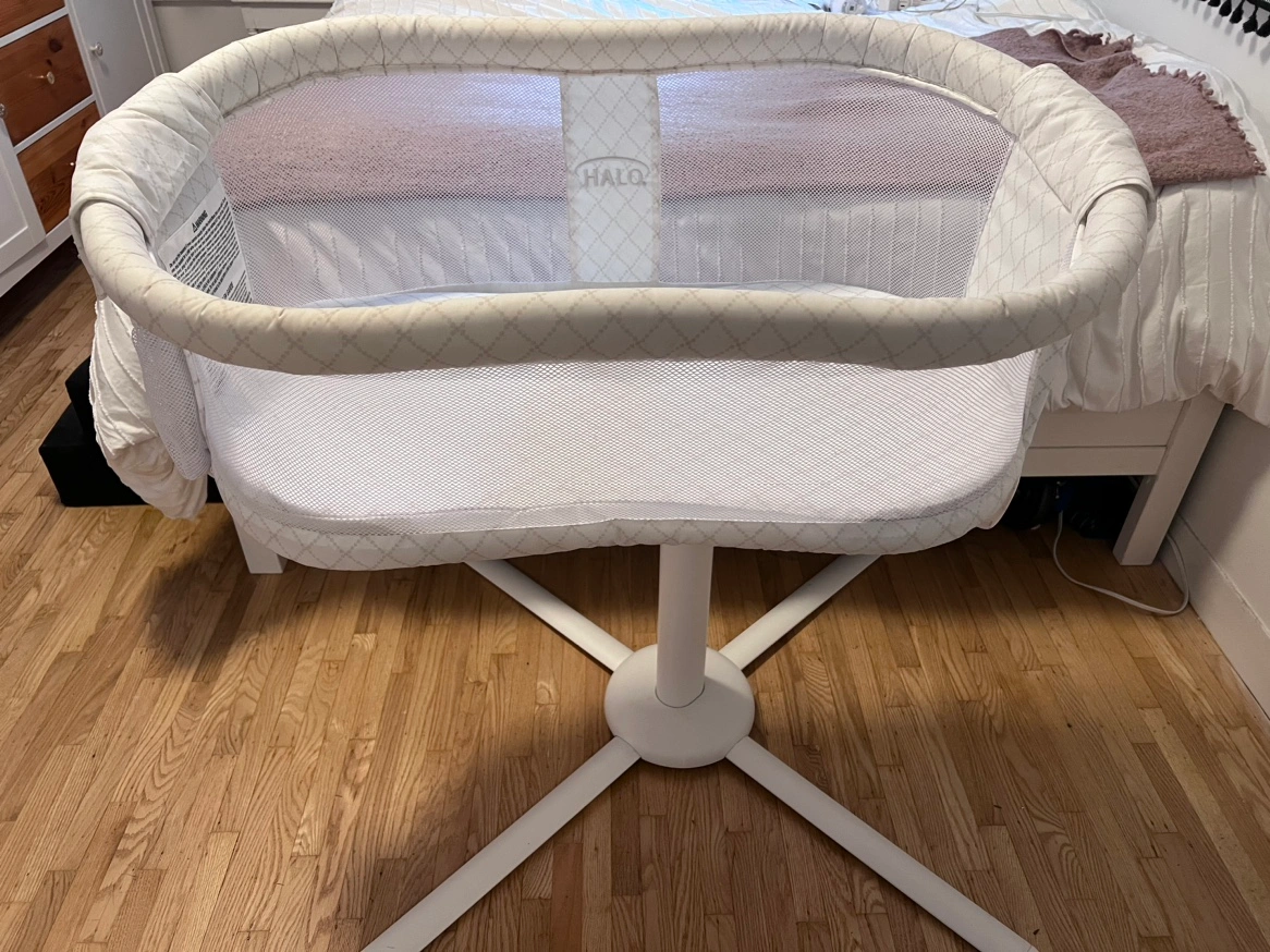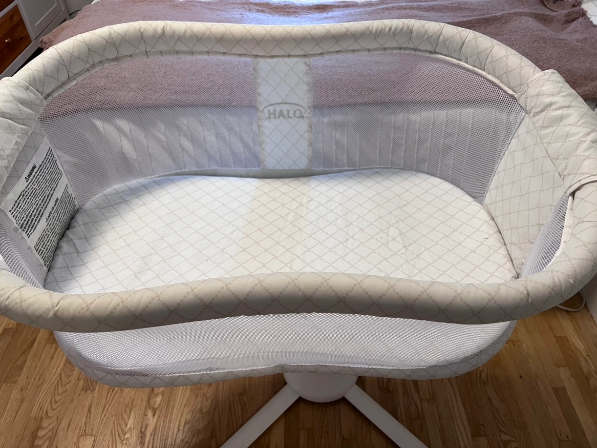 A Halo bassinet in great condition! I have a mattress protector and two covers to give you also ๐ our son has now grown out of it but it was perfect for the first few months- you can adjust the hight and it swivels.