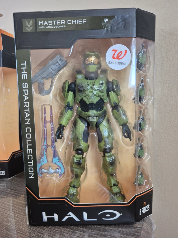 Selling a Halo Master Chief action figure from The Spartan Collection. This is a Walgreens exclusive and comes with accessories, including an energy sword, disruptor, and additional hands. It's still in the box and ready for a new home!