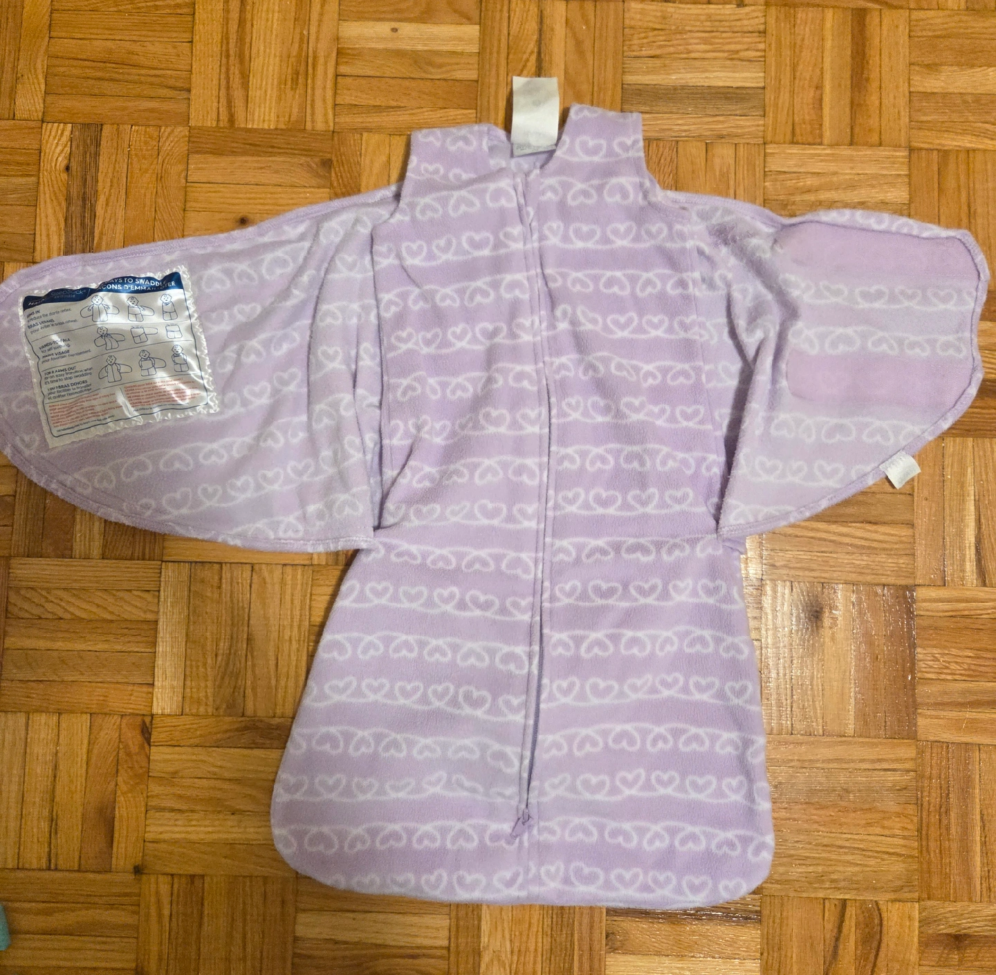 15Keep your little one snug as a bug with this adorable Halo Sleepsack Swaddle! It's in great condition and features a sweet purple heart pattern. Perfect for helping your baby sleep soundly and safely
