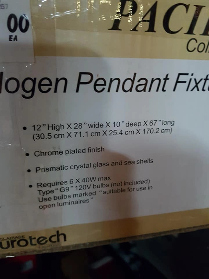 10Eurotech lighting halogen pendant light fixture, brand new in box, never opened, paid 319 plus tax, asking 200 obo.