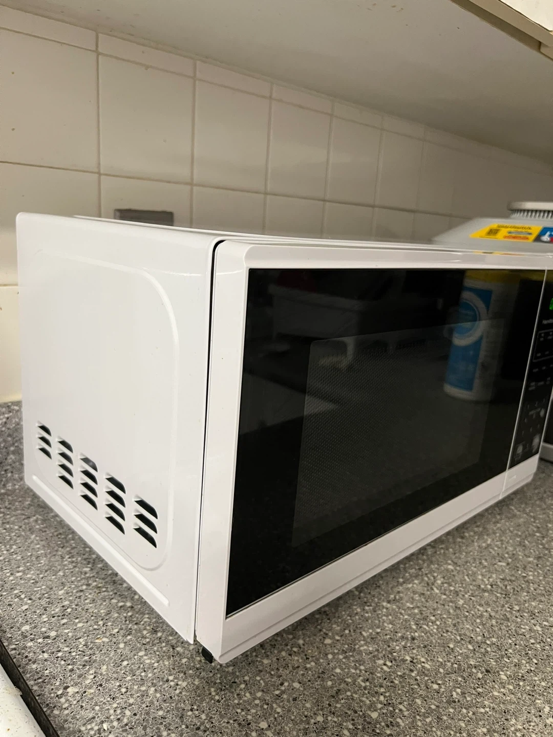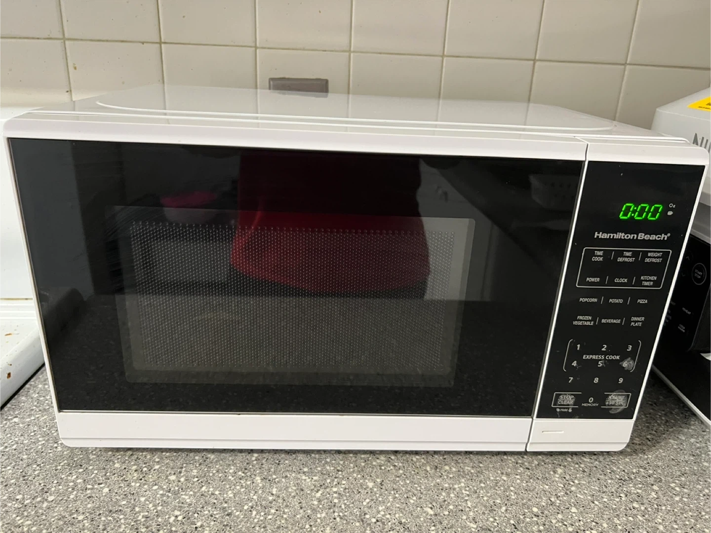 Selling a Hamilton Beach 700W Compact Microwave in excellent condition — clean inside and out, works perfectly. Bought for $78.95 from Walmart. ✅ Features: • 0.7 cu ft capacity – ideal for small kitchens, dorms, or offices • 700 watts of cooking power • 10 power levels + express cook buttons (1–6 mins) • Preset functions for popcorn, pizza, potatoes, beverages, frozen vegetables, and dinner plates • LED display with digital clock and timer • Easy-to-clean interior with glass turntable Brand: Hamilton Beach Model: Compact 0.7 cu ft, 700W Condition: Gently used, very clean, works like new Reason for selling: Moving and no longer needed Pickup only.