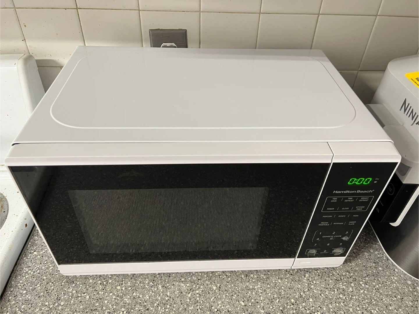 Selling a Hamilton Beach 700W Compact Microwave in excellent condition — clean inside and out, works perfectly. Bought for $78.95 from Walmart. ✅ Features: • 0.7 cu ft capacity – ideal for small kitchens, dorms, or offices • 700 watts of cooking power • 10 power levels + express cook buttons (1–6 mins) • Preset functions for popcorn, pizza, potatoes, beverages, frozen vegetables, and dinner plates • LED display with digital clock and timer • Easy-to-clean interior with glass turntable Brand: Hamilton Beach Model: Compact 0.7 cu ft, 700W Condition: Gently used, very clean, works like new Reason for selling: Moving and no longer needed Pickup only.