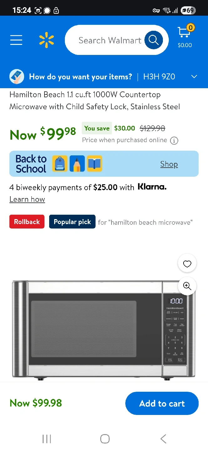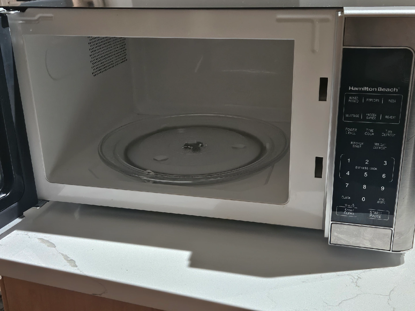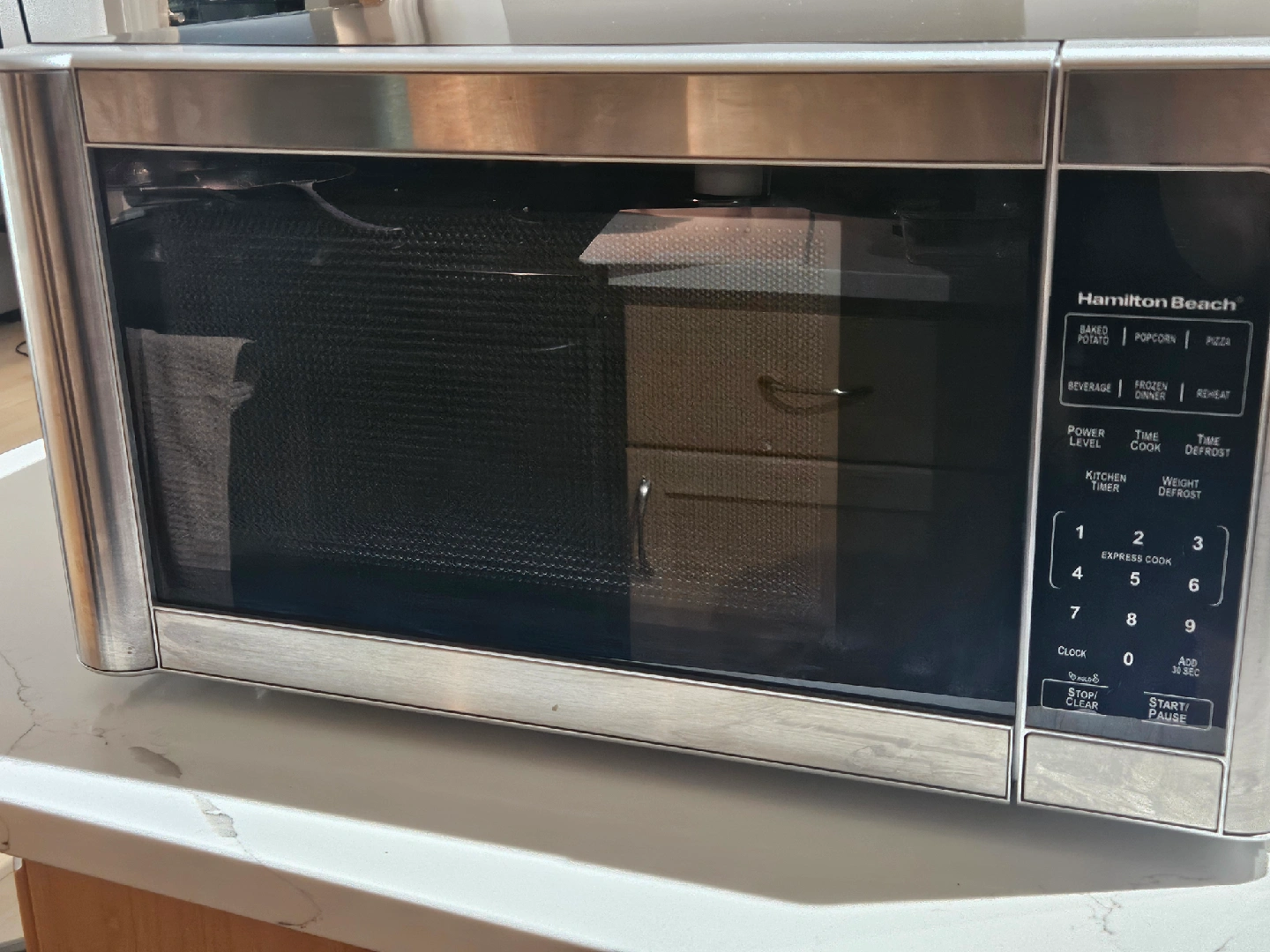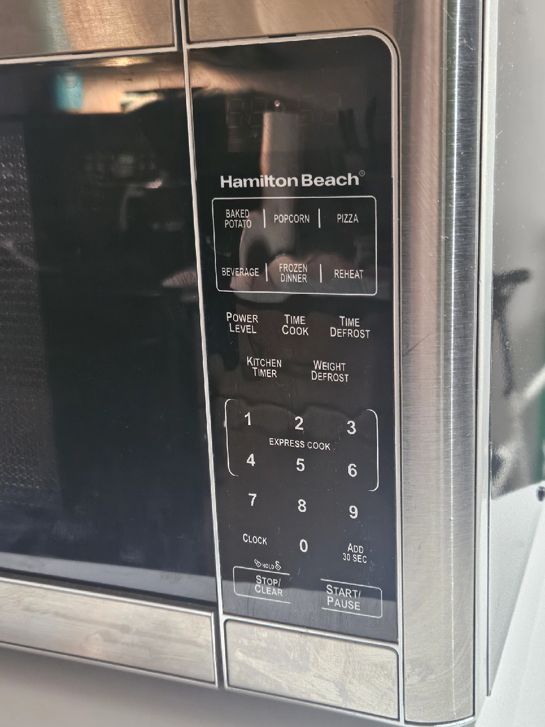 Selling a Hamilton Beach 1.1 cu.ft countertop microwave. Stainless steel. New $99.98. from Walmart. Lightly used