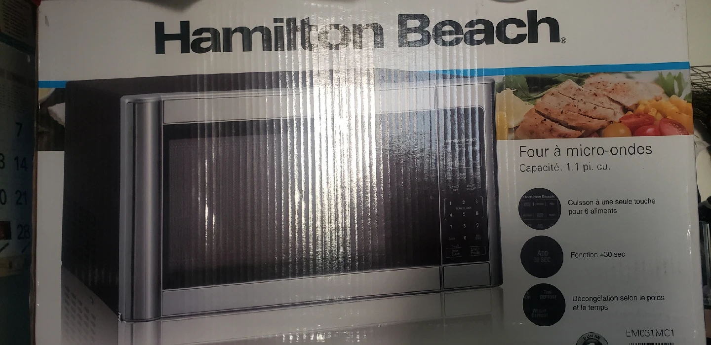 19Selling a Hamilton Beach microwave oven. It's in excellent condition and ready for a new home! The capacity is 1.1 cu. ft. Perfect for small kitchens or apartments! I only used it for 4 months and then I shifted to another apartment where the microwave cabinet is small and it doesn't fit in..