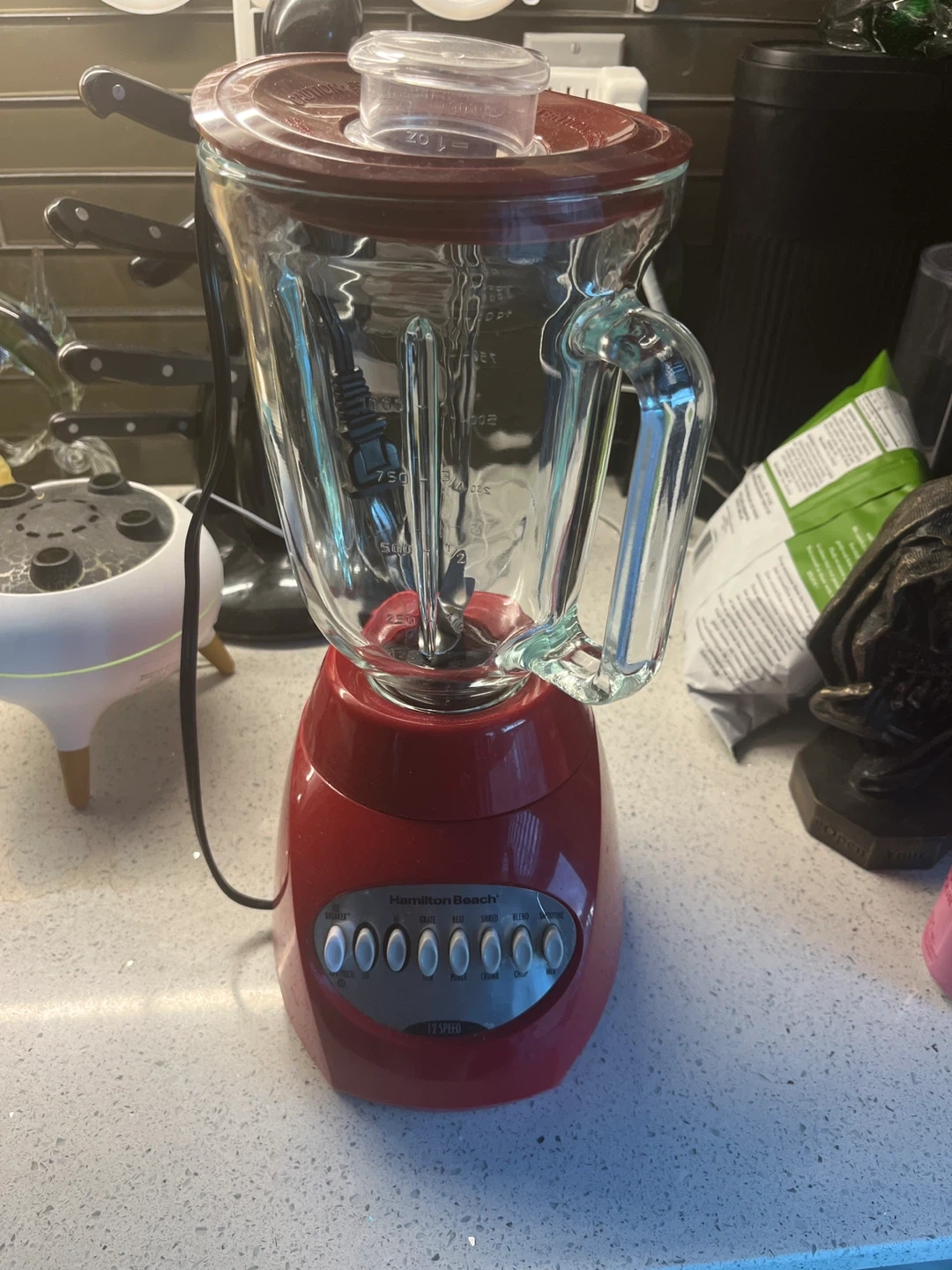 Selling a Hamilton Beach 12-speed blender in red. It's in good condition and ready to make smoothies, chop veggies, and more! It features settings for ice breaking, grating, beating, shredding, blending, and smoothie making. Perfect for all your blending needs! You can pick up by Carlton and Jarvis area