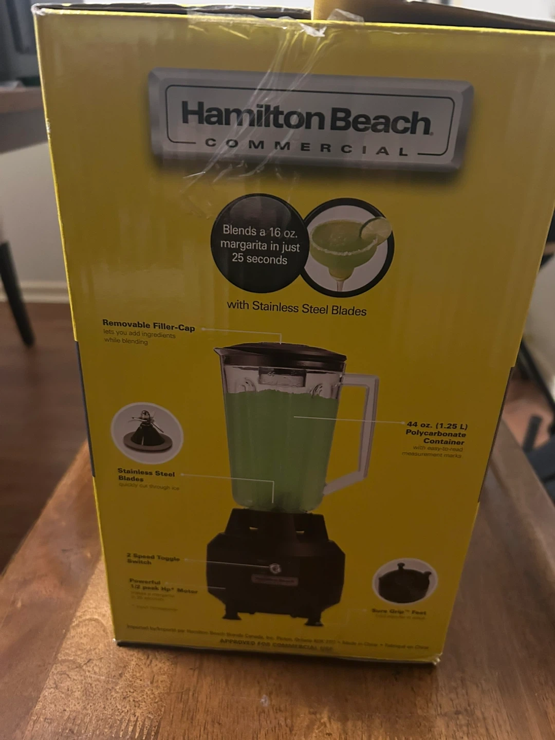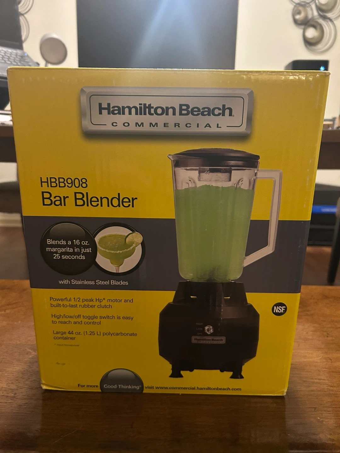 Selling a like new Hamilton Beach Commercial HBB908 Bar Blender! It has been used only a few times and comes in its original box. This blender features stainless steel blades and a powerful 1/2 peak HP motor. It can blend a 16 oz margarita in just 25 seconds. The container is a large 44 oz (1.25 L) polycarbonate.