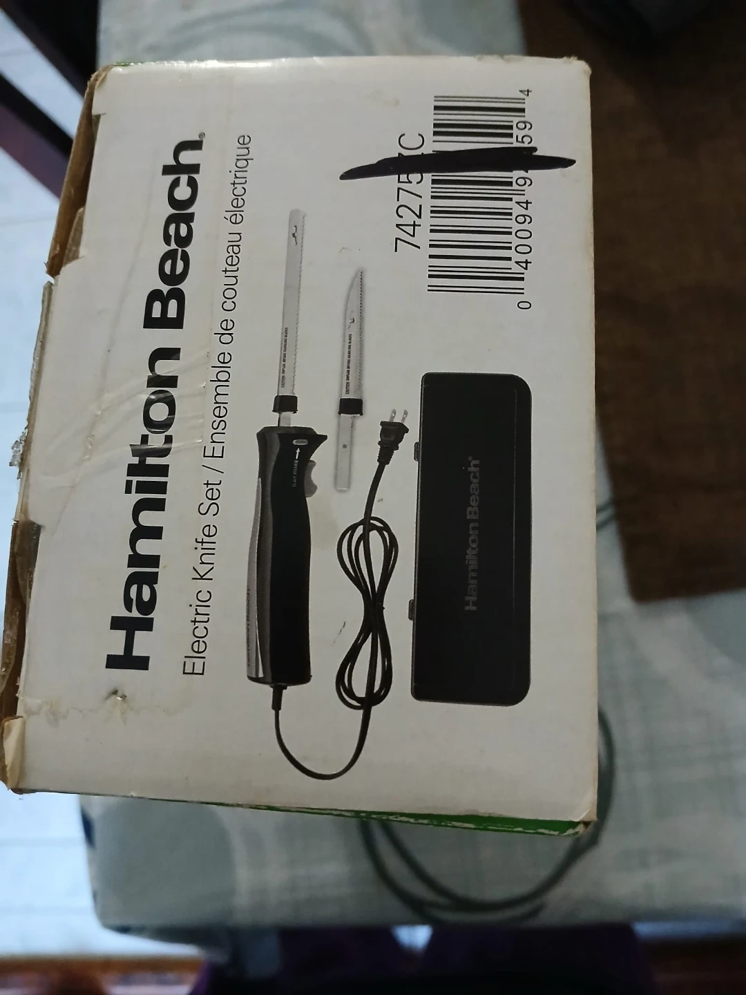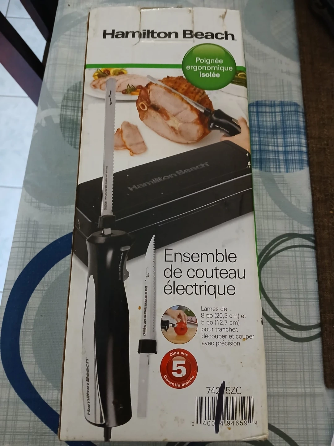10Selling a brand new Hamilton Beach Electric Knife Set! It's still in its original packaging. This set includes stainless steel 8" carving and 5" kitchen utility blades, and a compact storage case. Perfect for carving and slicing with precision!
