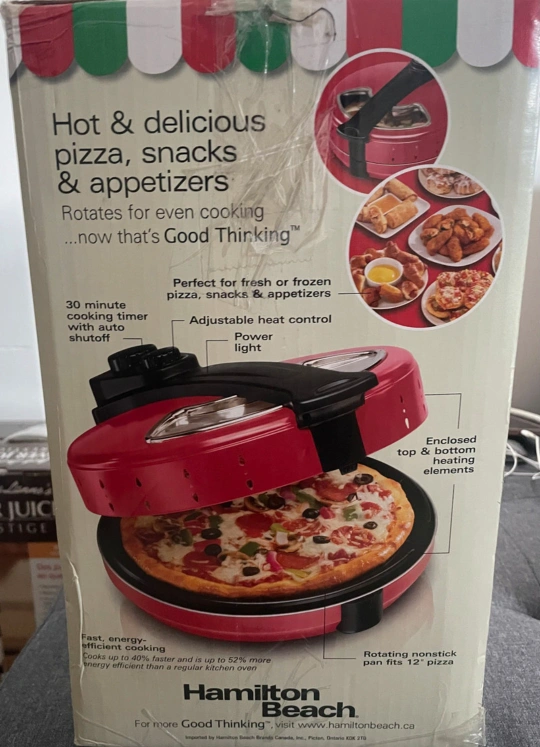 This appliance prepares hot and delicious pizza, snacks, and appetizers. Rotates for even cooking. It cooks up to 40% faster. A great way to cook a quick meal after a long day.