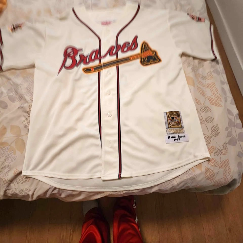 New, never worn, authentic Cooperstown collection Milwaukee Braves Hank Aaron jersey 1957 edition