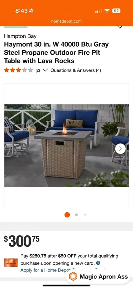65Hampton Bay 30 inch propane, fire table brand new still in the box retails for $300 plus taxes it’s getting cold outside so it’s time to warm up your backyard
