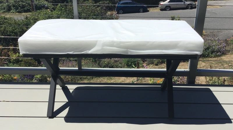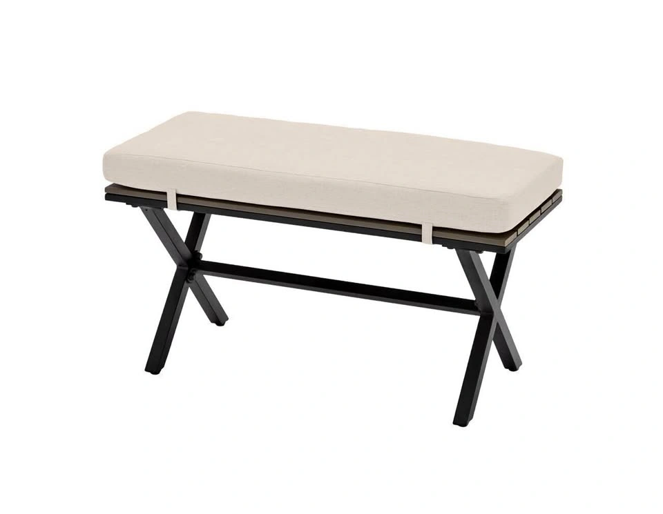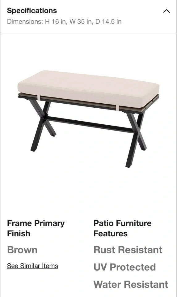 37Hampton Bay Laguna Point Brown Steel Wood Top Outdoor Patio Bench with CushionGuard Almond Tan Cushions. Let me know if you're interested!