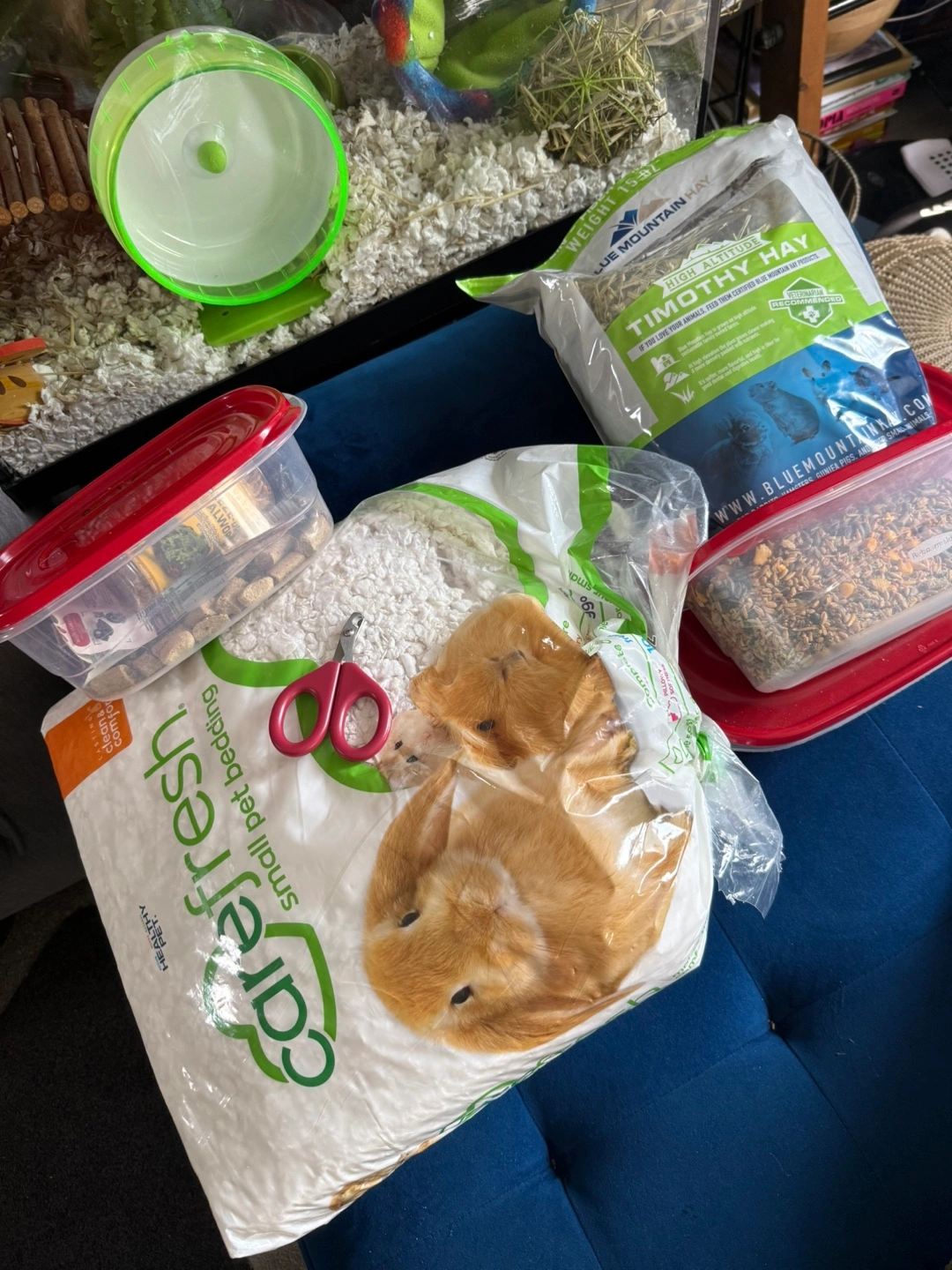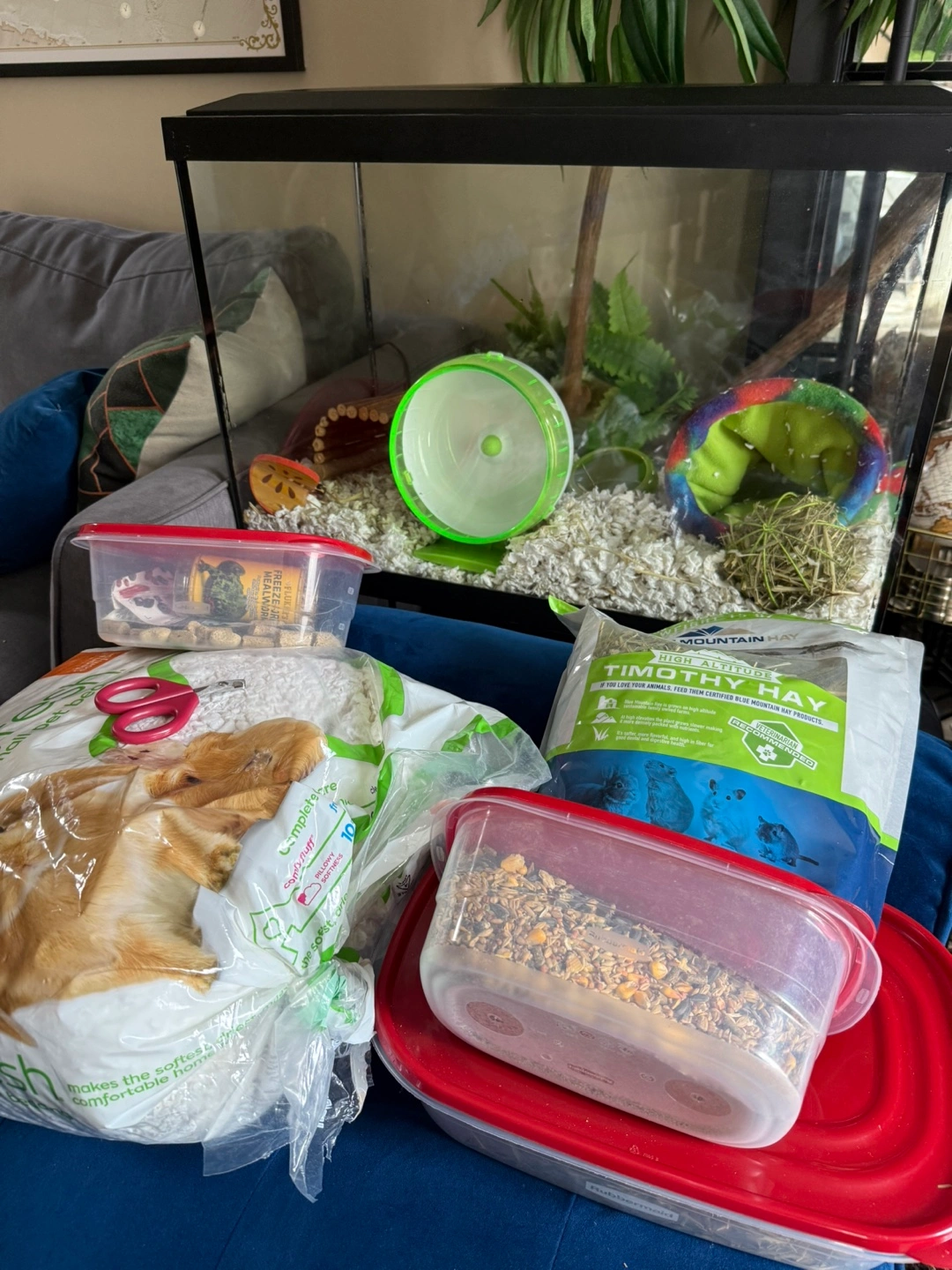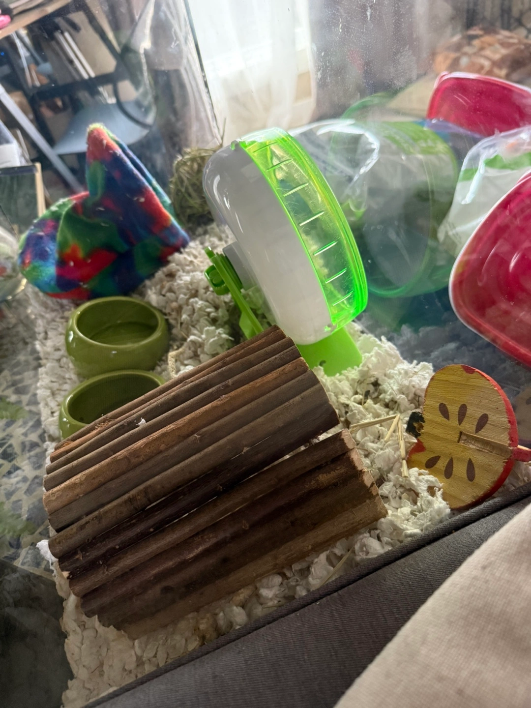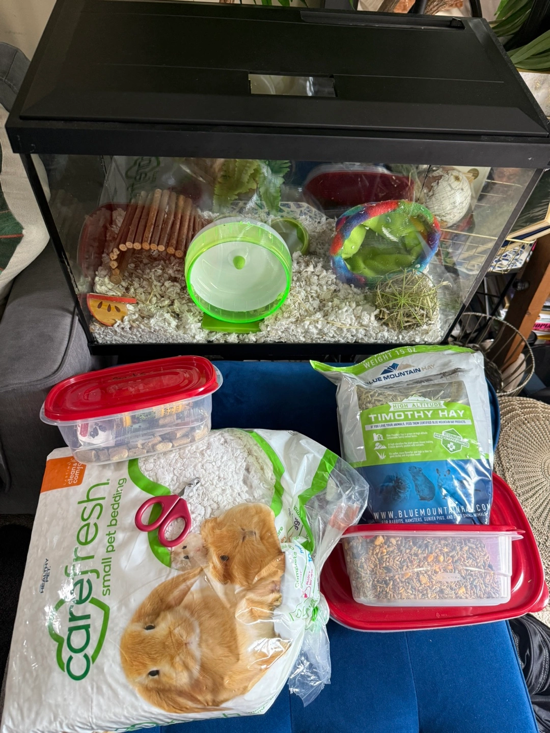 Selling a hamster cage along with various accessories! It includes a wheel, bedding, food, and some toys to keep your little friend entertained. Everything you need to get started!
