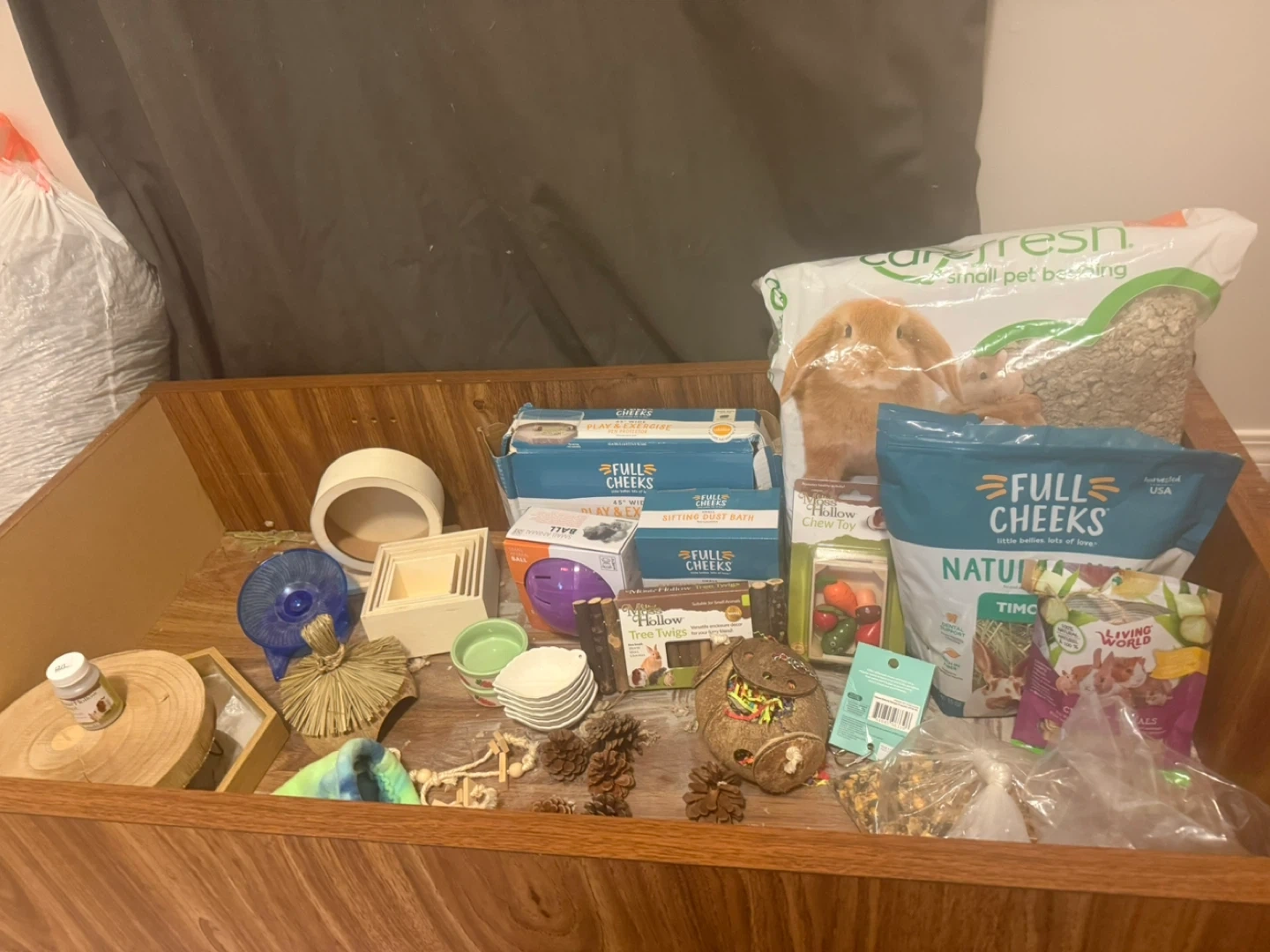 10Brand new 500$ worth. Hamsters lived in it for two days before I had to return them due to allergies. Selling a hamster cage with lots of accessories! It includes a variety of toys, houses, bedding, and food. Everything your little friend needs to feel right at home
