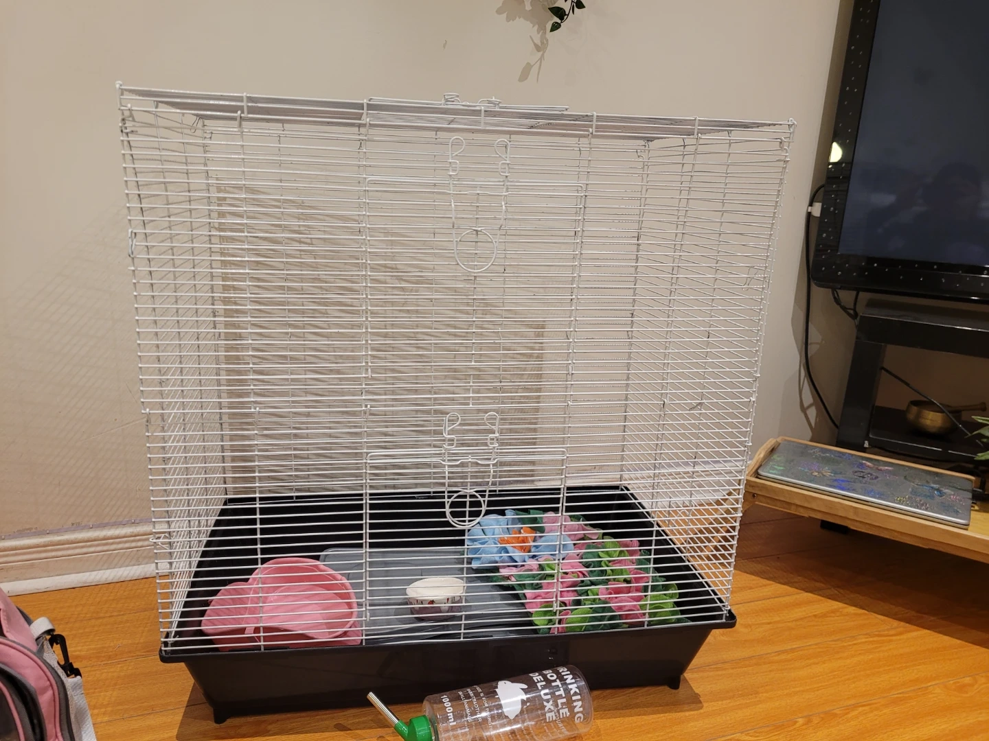 65Selling a hamster or small animal cage that comes with accessories! The cage includes a drinking bottle deluxe, and other items as pictured. It's ready for a new furry friend! Height: 1040 mm Width: 790 mm Depth: 530 mm